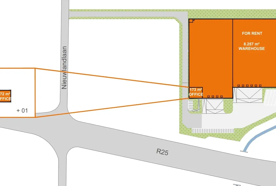 Op zoek naar een logistieke 'hotspot' in Aarschot? Zoek niet verder. Het magazijn is gelegen langsheen de R25 en biedt een goede ontsluiting naar de E313, E314 en de RO.