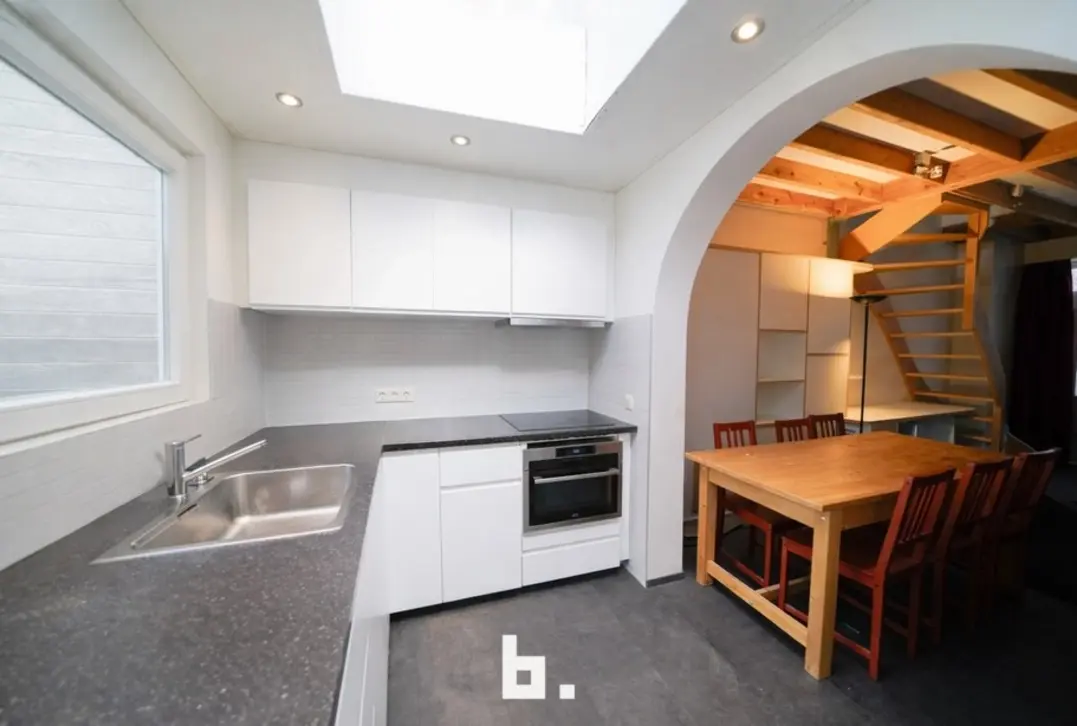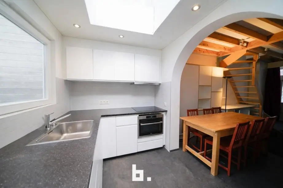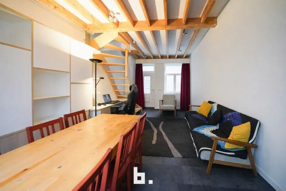De woning beschikt over een gezellige woonkamer met veel lichtinval en een open, volledig uitgeruste keuken. Op de eerste verdieping bevindt zich een ruime slaapkamer en een nette badkamer. Daarnaast is er een praktische zolderruimte die kan dienen als extra opslag.