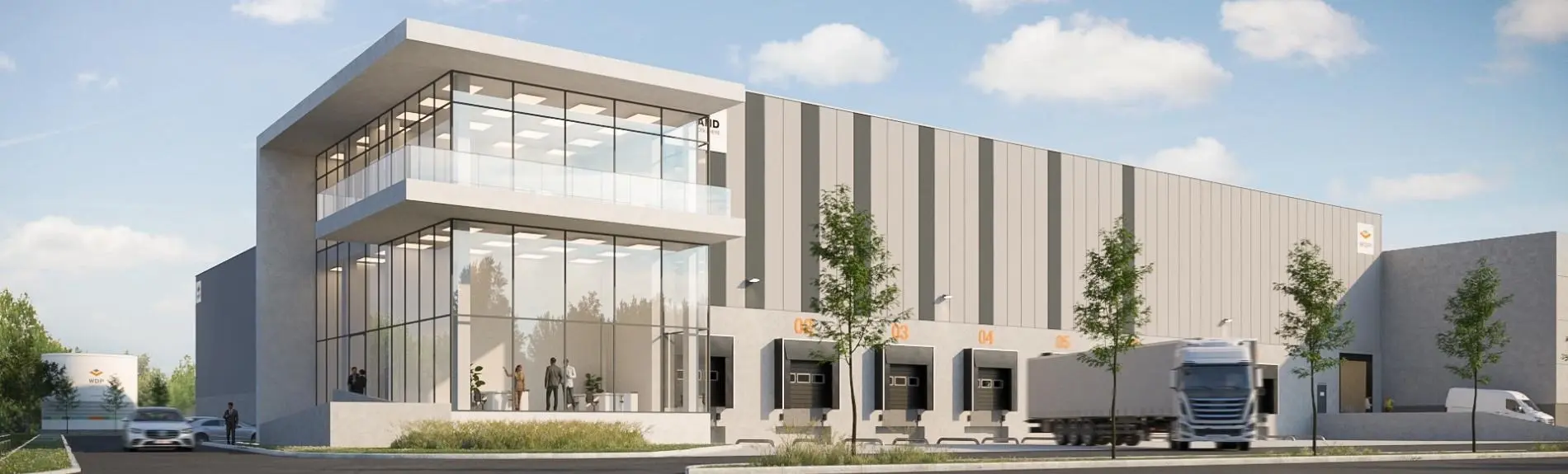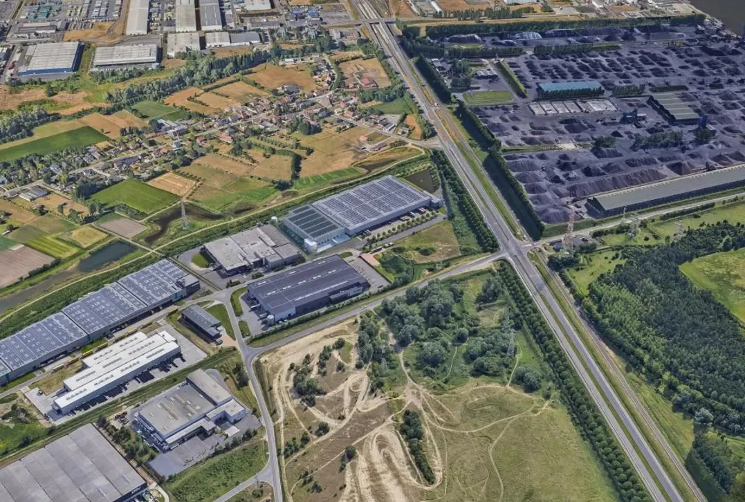 Dit magazijn is gelegen kortbij de autosnelwegen E34, E40 en E17.