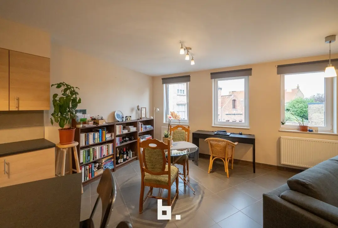Recent duplex appartement op wandelafstand van het centrum van Brugge. Het appartement omvat op het gelijkvloers een garage met plaats voor wasmachine en droogkast. Op de 1e verdieping bevindt zich de ruime woonkamer, open keuken, berging, gastentoilet en terras. Op de 2e verdieping bevinden zich 2 slaapkamers en de badkamer met douche, toilet en enkele lavabo.