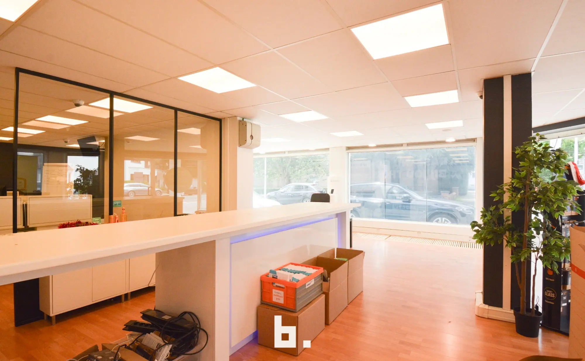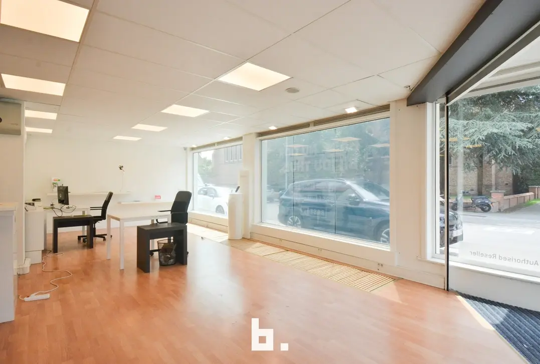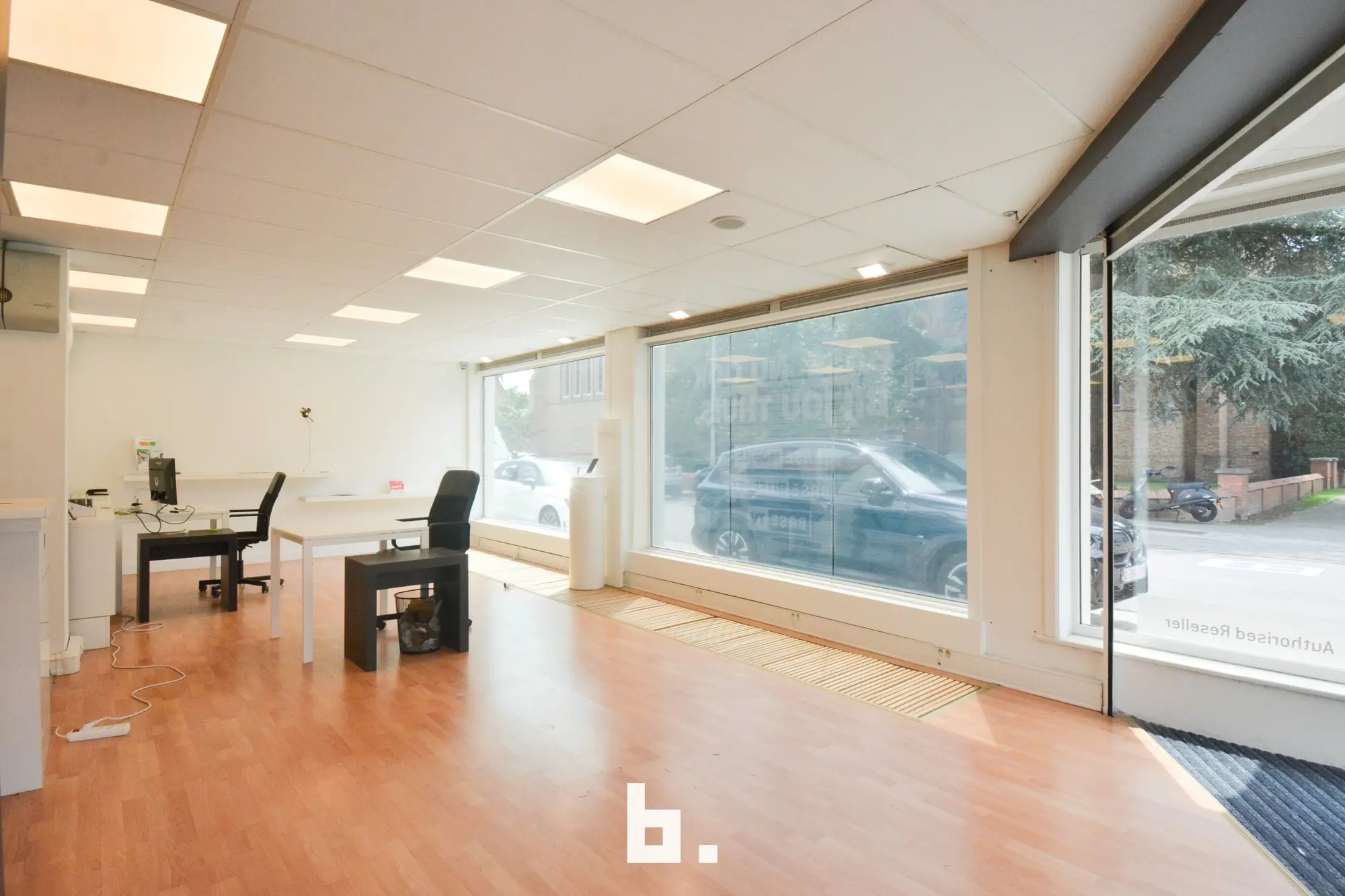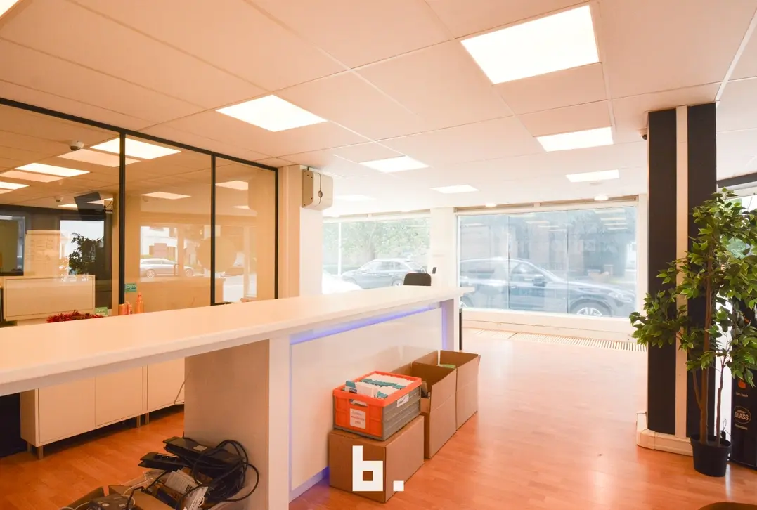 Op een toplocatie, op de hoek van een drukke en goed bereikbare straat, bevindt zich dit veelzijdige handelspand dat talloze mogelijkheden biedt. Dankzij de hoekligging geniet het pand van maximale zichtbaarheid en grote raampartijen aan twee zijden, wat het ideaal maakt als commerciële uitvalsbasis. Bij het binnenkomen bevindt zich een ruime en lichtrijke showroom. Aansluitend is er een aparte vergaderruimte, ideaal voor overleg, administratie of stille werkplek. Verder is het pand voorzien van een praktische garage of opslagruimte die rechtstreeks toegankelijk is, evenals een compact maar functioneel keukentje voor intern gebruik. Alles is ingericht met het oog op comfort en efficiëntie, met ook sanitaire voorzieningen aanwezig.