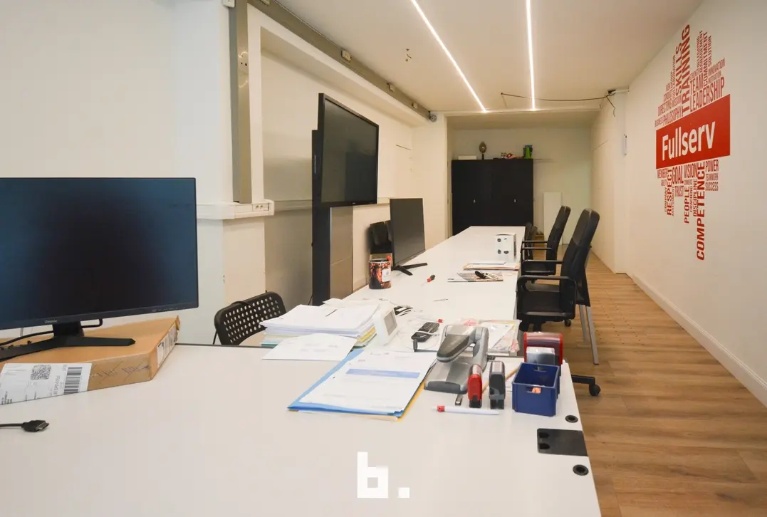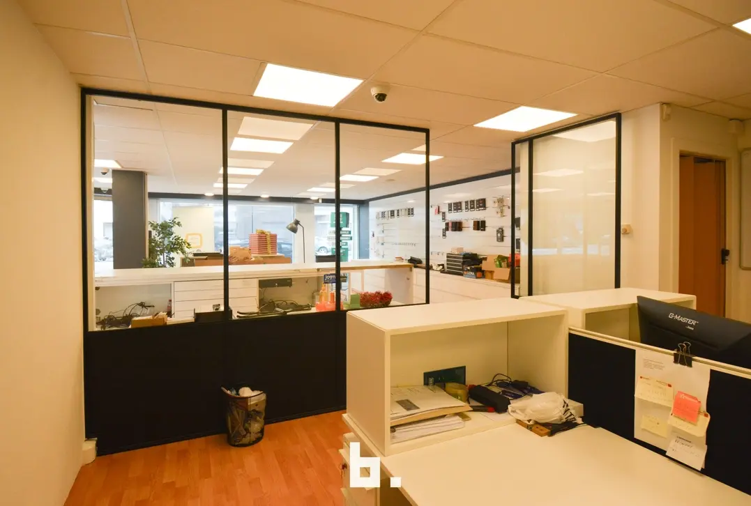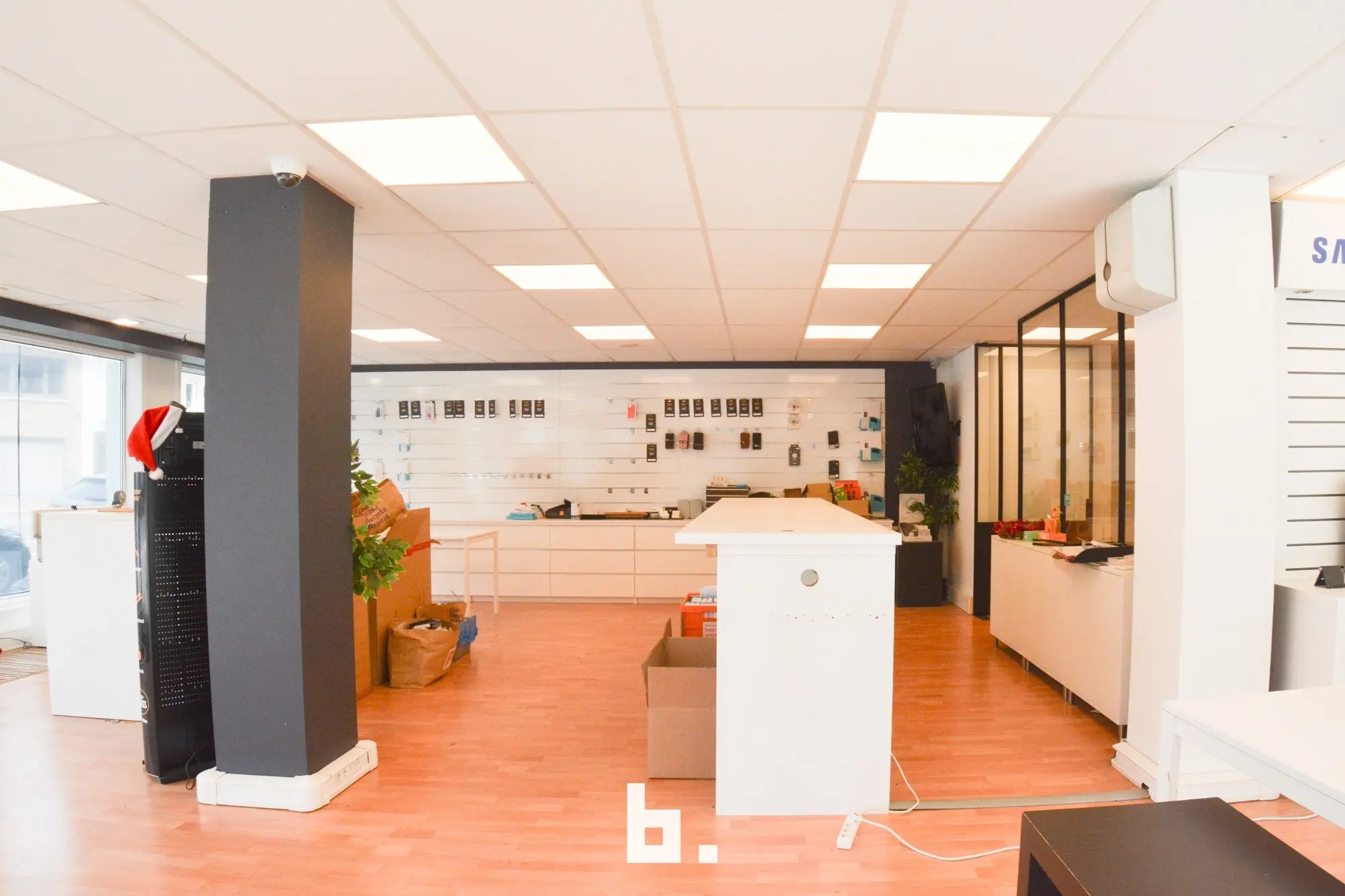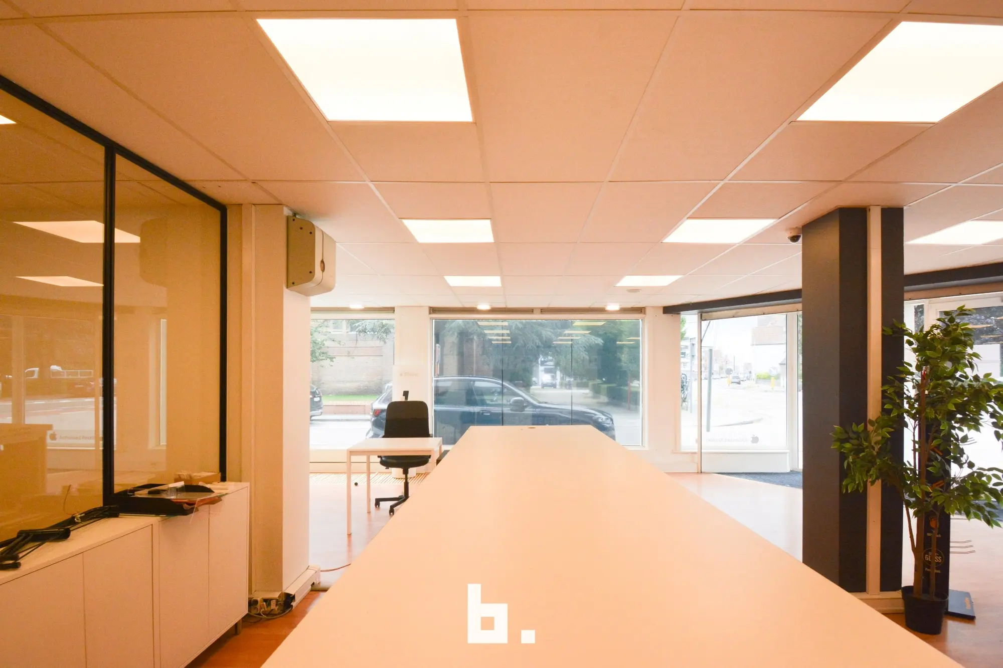 Op een toplocatie, op de hoek van een drukke en goed bereikbare straat, bevindt zich dit veelzijdige handelspand dat talloze mogelijkheden biedt. Dankzij de hoekligging geniet het pand van maximale zichtbaarheid en grote raampartijen aan twee zijden, wat het ideaal maakt als commerciële uitvalsbasis. Bij het binnenkomen bevindt zich een ruime en lichtrijke showroom. Aansluitend is er een aparte vergaderruimte, ideaal voor overleg, administratie of stille werkplek. Verder is het pand voorzien van een praktische garage of opslagruimte die rechtstreeks toegankelijk is, evenals een compact maar functioneel keukentje voor intern gebruik. Alles is ingericht met het oog op comfort en efficiëntie, met ook sanitaire voorzieningen aanwezig.