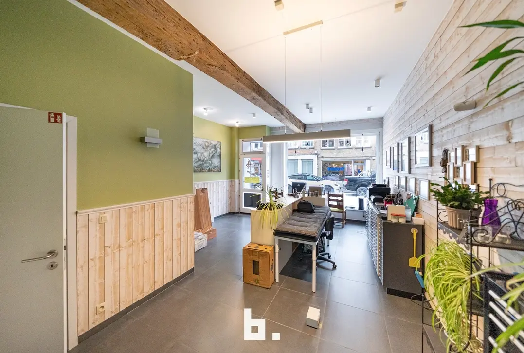 Gelijkvloers: twee ruime kantoorruimtes, compacte kitchenette en aangenaam buitenterras.