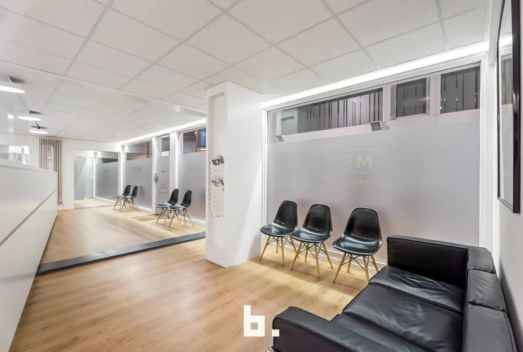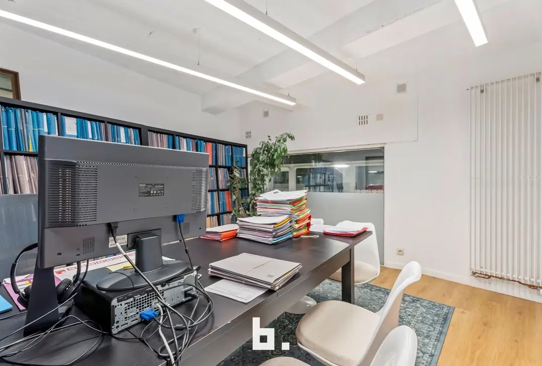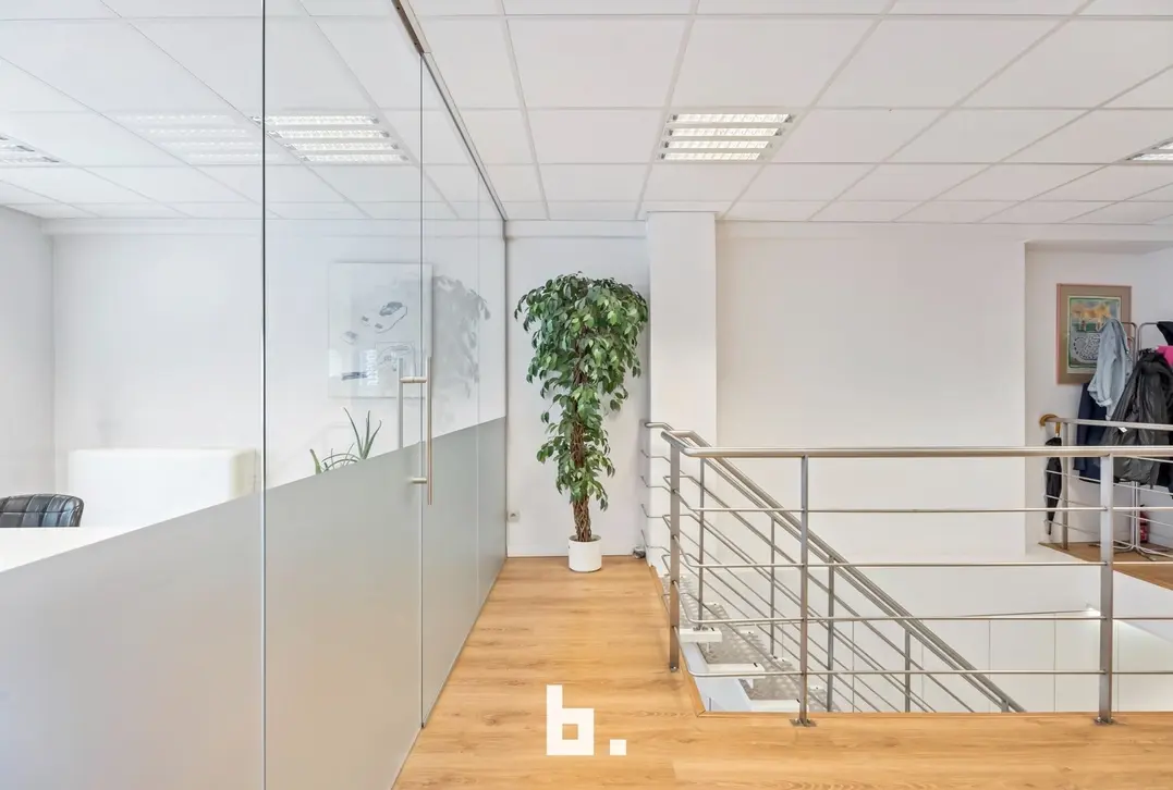 Deze instapklare kantoorruimte van 375 m², verdeeld over twee verdiepingen (gelijkvloers en 1ste verdieping), biedt alle nodige voorzieningen voor een efficiënte en aangename werkomgeving.