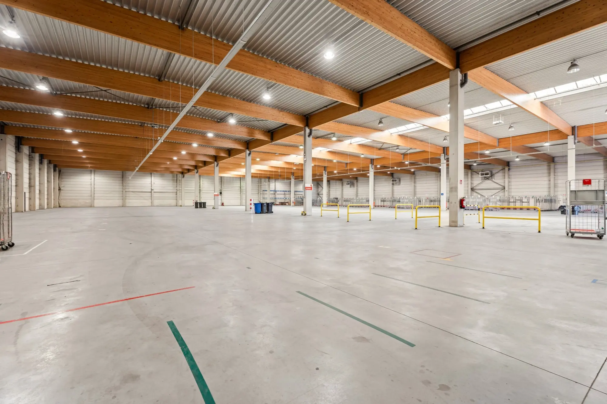 - Voorzieningen: Centrale lichtstraat, geïsoleerd steeldeck, sanitair en nutsvoorzieningen (gas, water, elektriciteit)