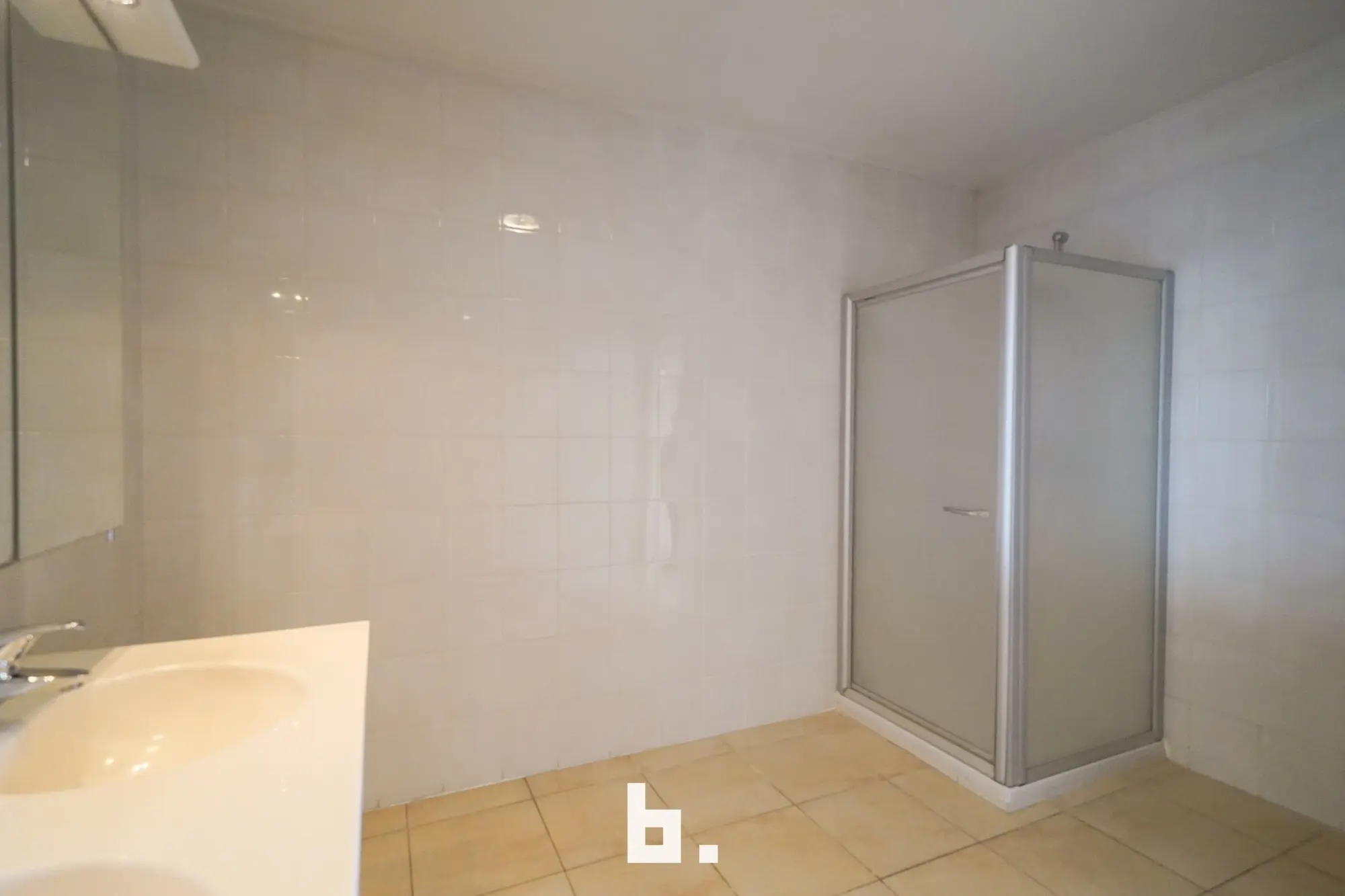Het appartement omvat een lichtrijke grote woonkamer, praktische keuken, 2 slaapkamers, badkamer met lavabo en douche, berging met plaats voor wasmachine en gastentoilet.
