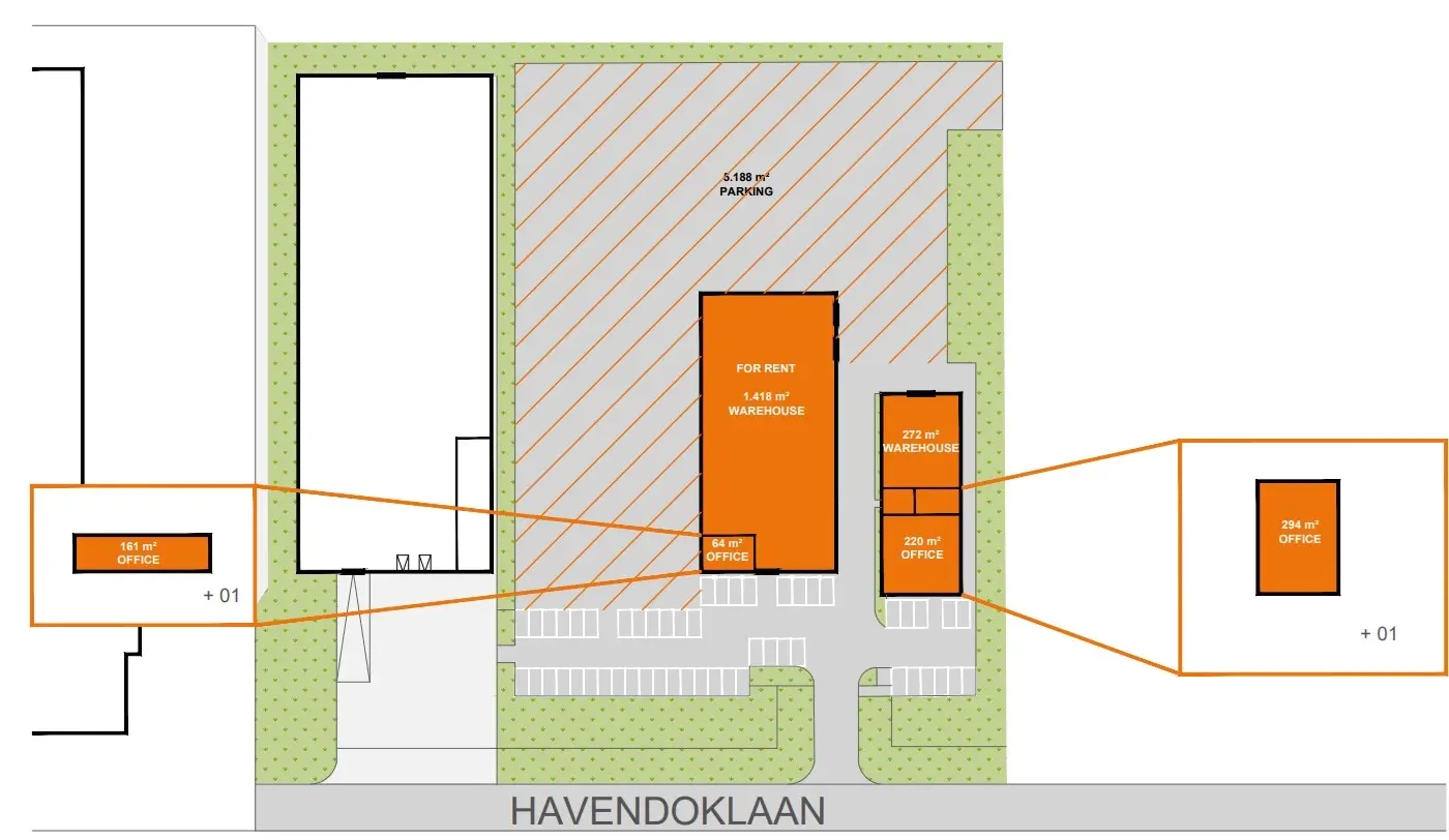 - Buitenterrein: 5.188 m² + 60 parkeerplaatsen