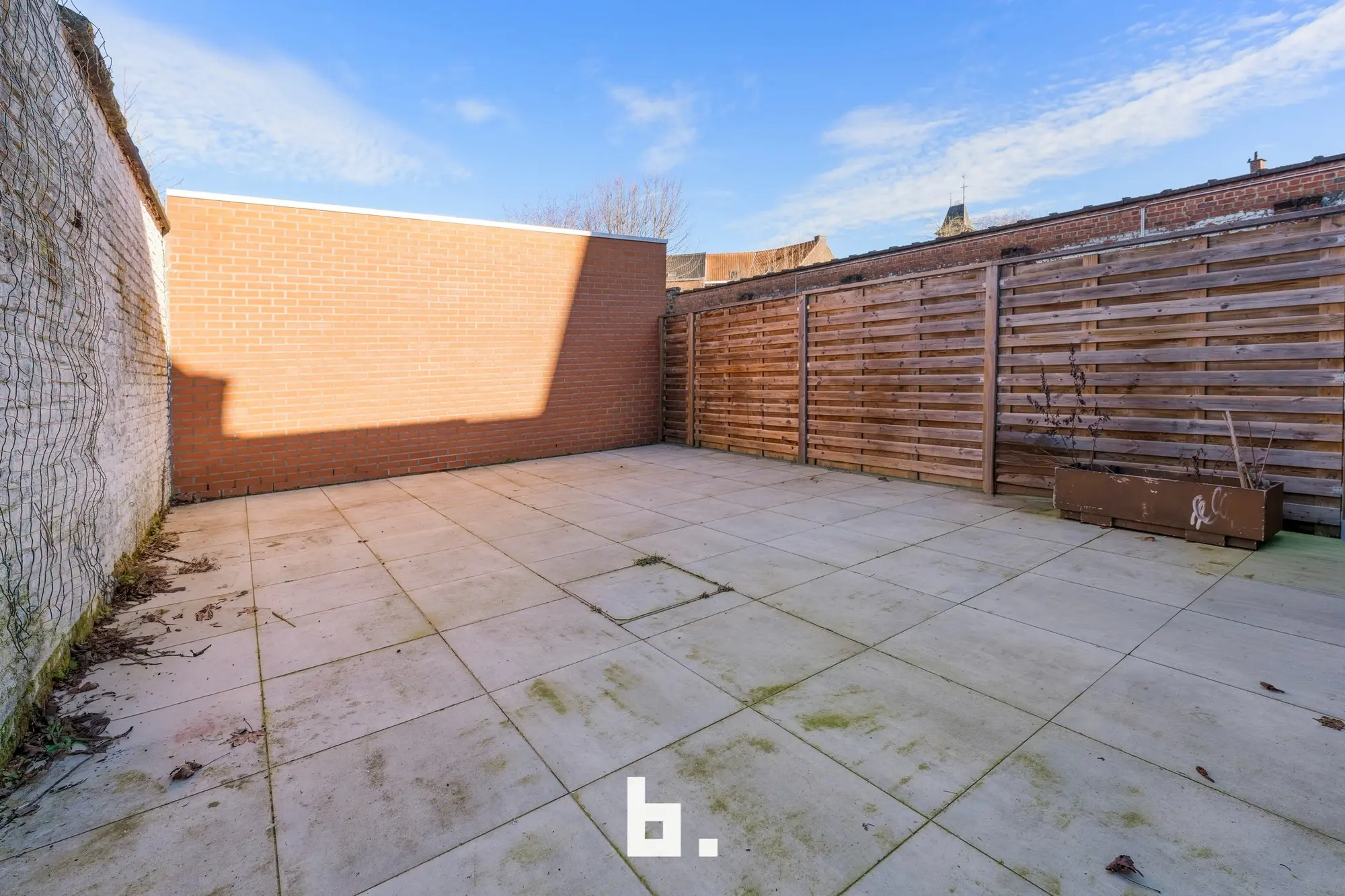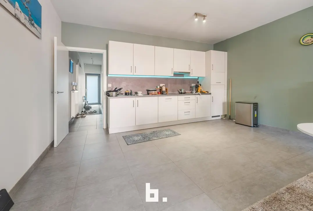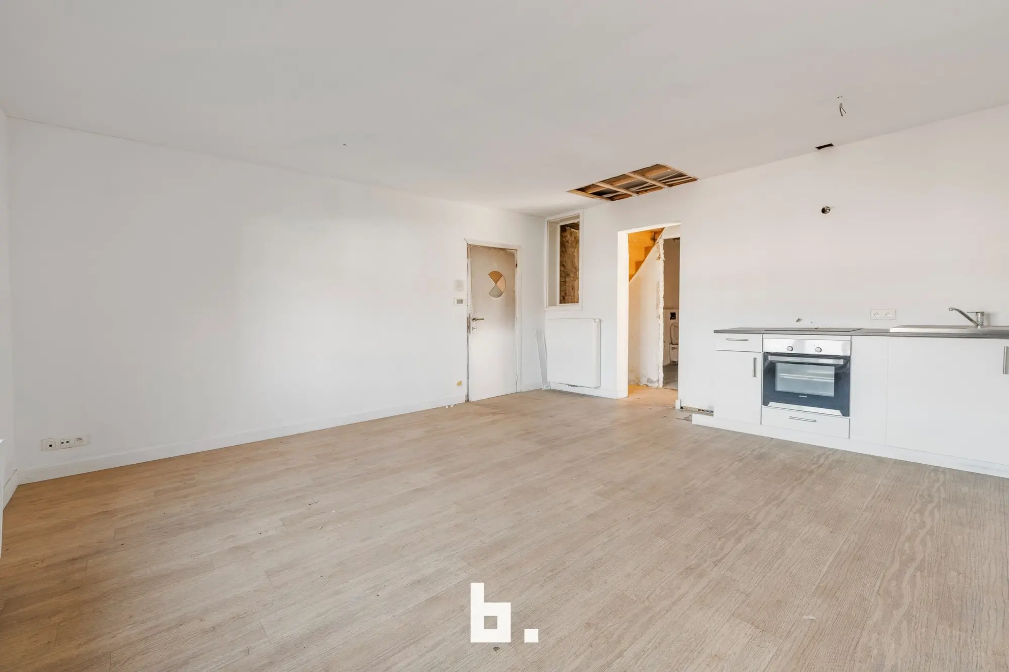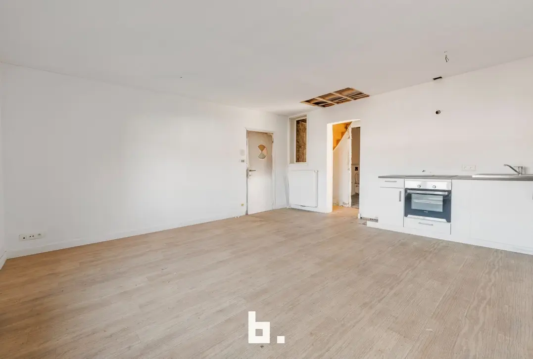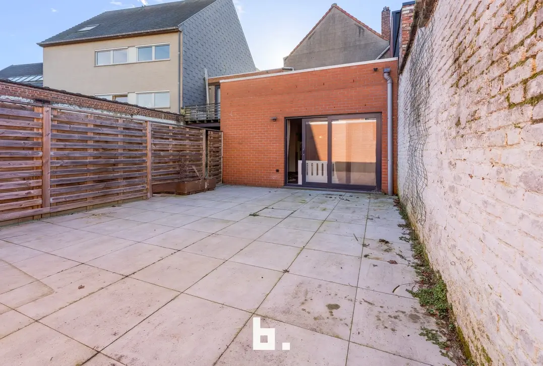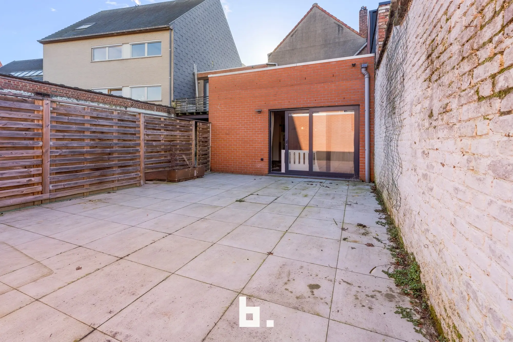Appartement 1 (volledig gerenoveerd en verhuurd) bestaande uit: Inkomhal, leefruimte met open keuken, slaapkamer, badkamer en ruime stadstuin