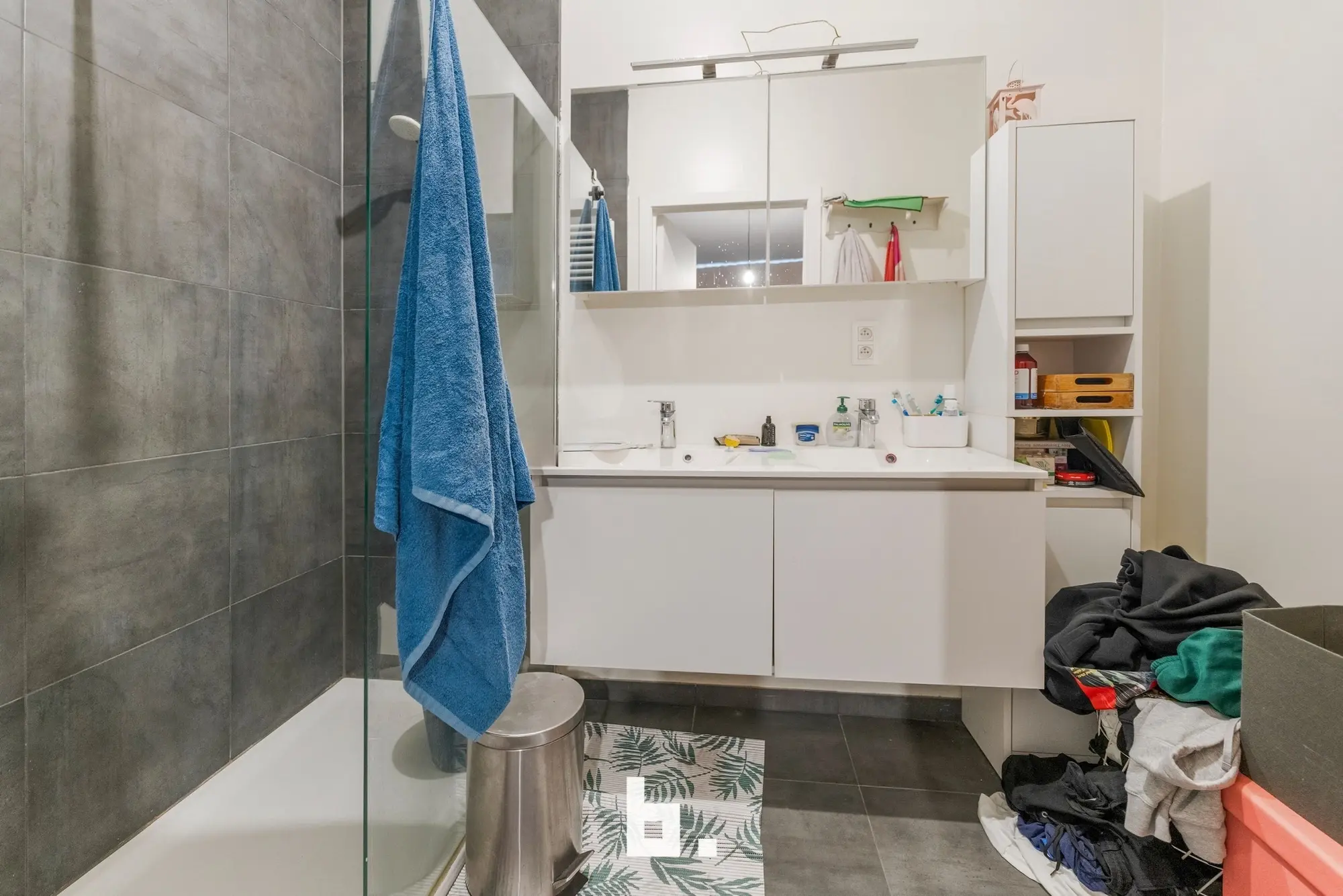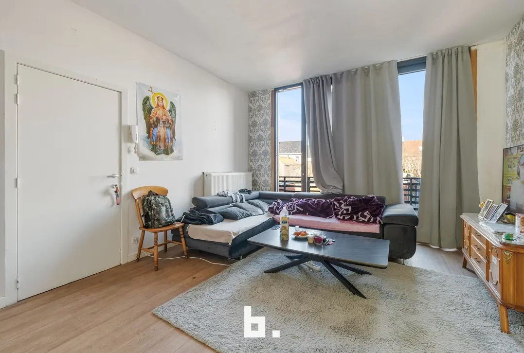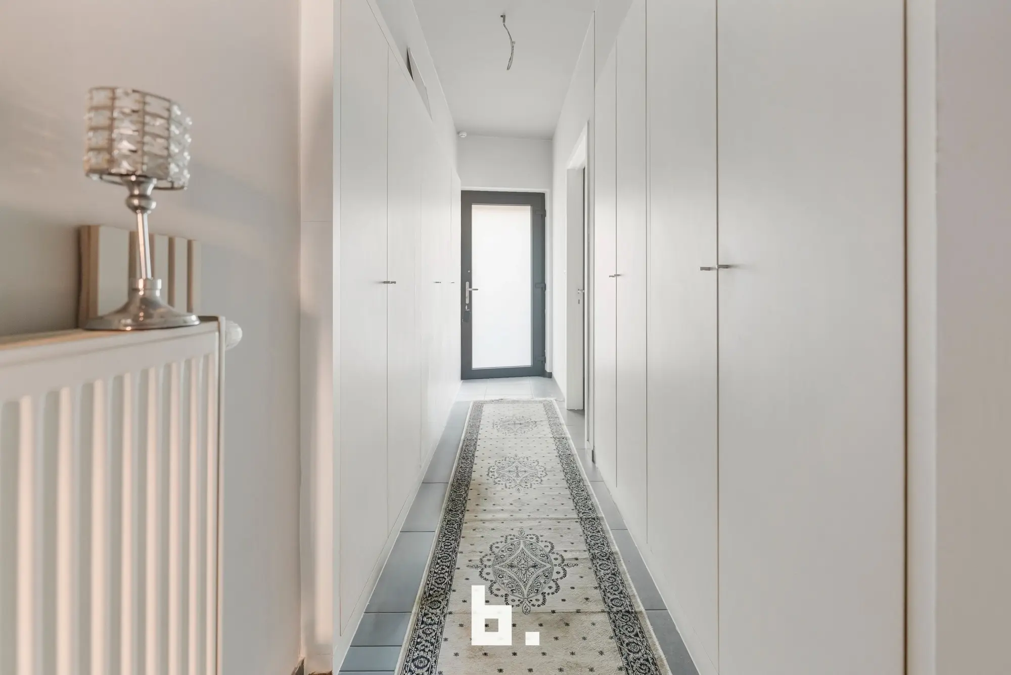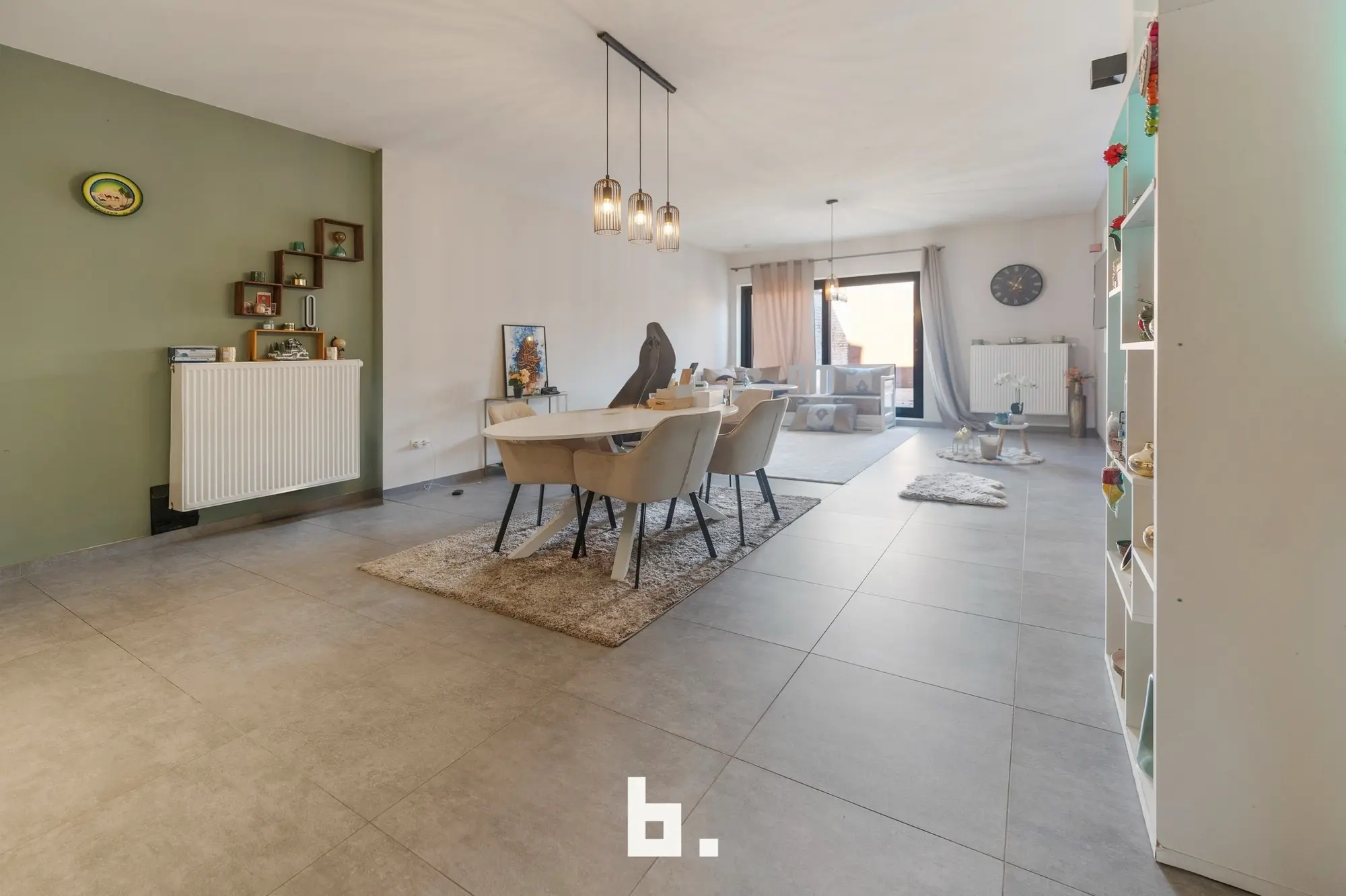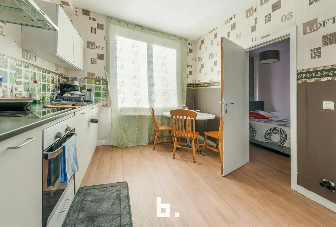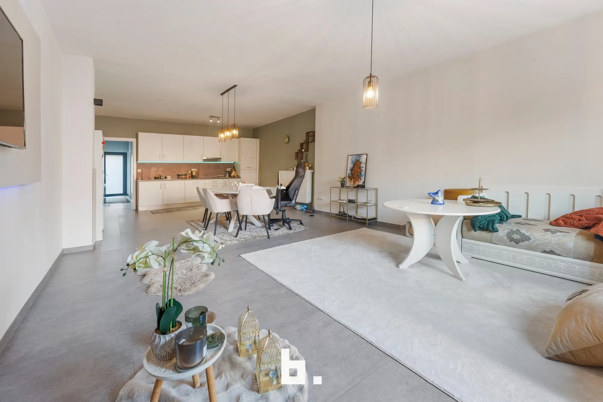 Appartement 1 (volledig gerenoveerd en verhuurd) bestaande uit: Inkomhal, leefruimte met open keuken, slaapkamer, badkamer en ruime stadstuin