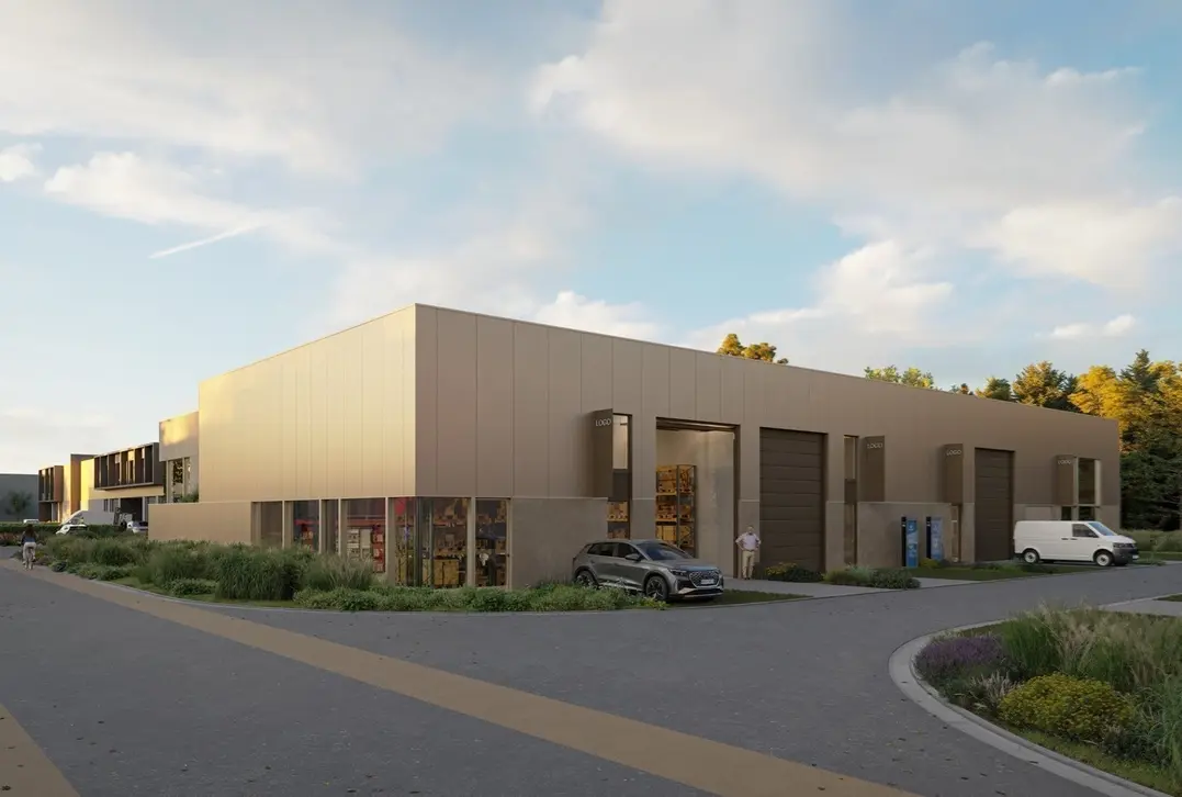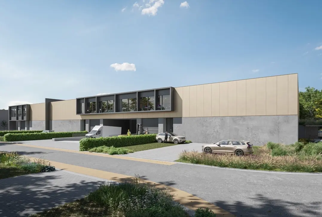 Deze KMO-ontwikkeling omvat units tussen de 180 en 288 m² en in een latere fase ook magazijnen van 1.233 tot 1.268 m². De units worden opgeleverd in Q2-Q3 2025.