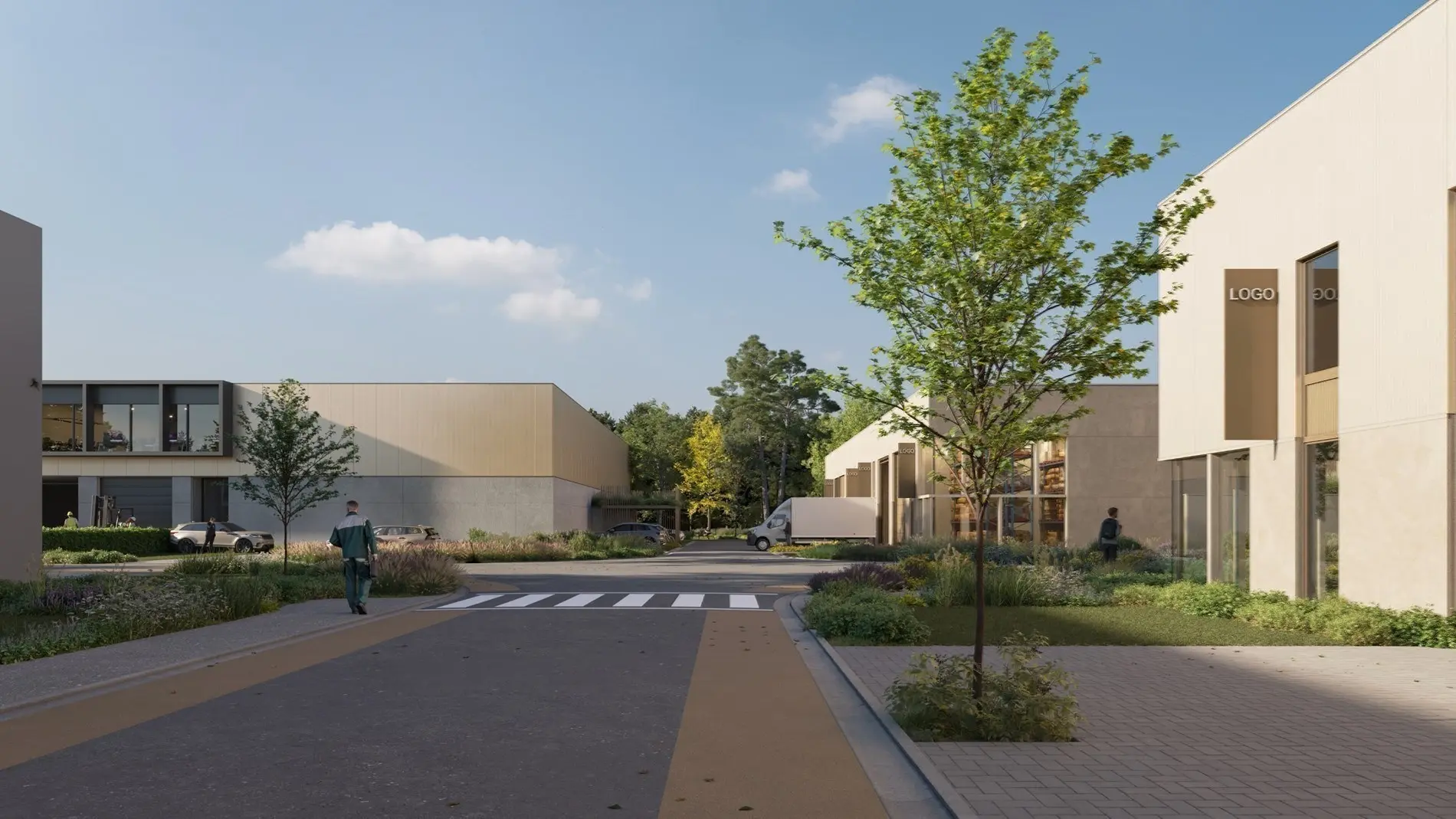 Deze KMO-ontwikkeling omvat units tussen de 180 en 288 m² en in een latere fase ook magazijnen van 1.233 tot 1.268 m². De units worden opgeleverd in Q2-Q3 2025.