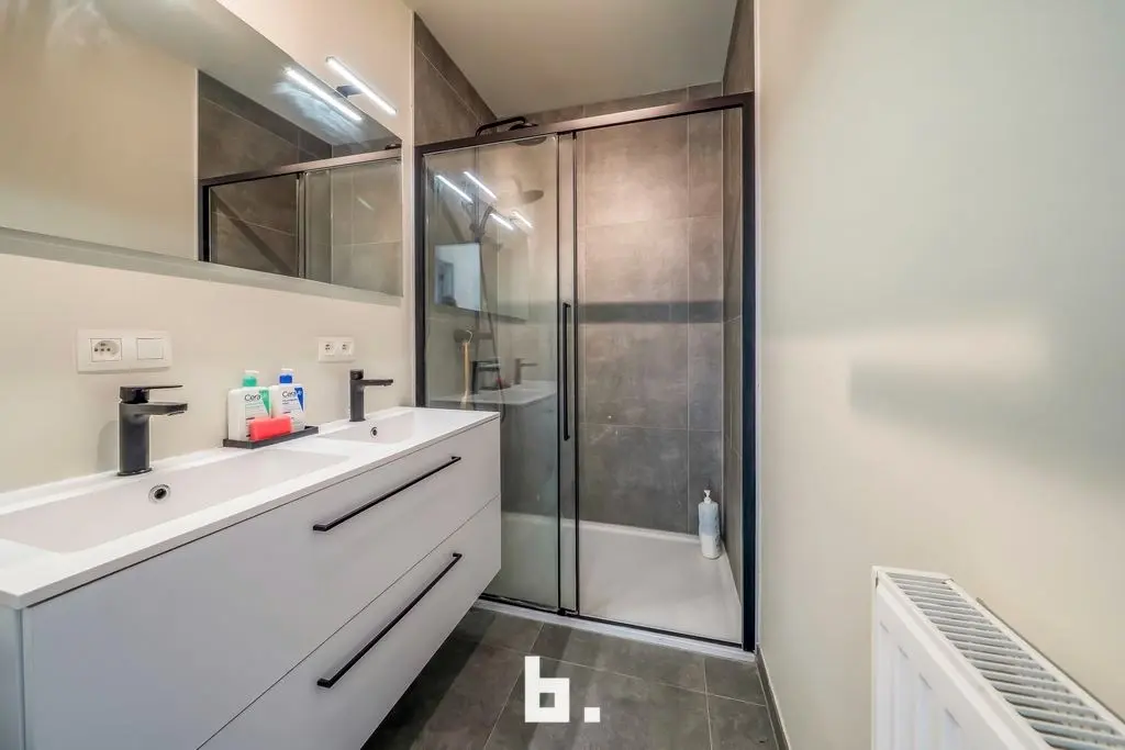 Dit energieneutrale appartement biedt alles wat nodig is om uiterst comfortabel te wonen. Het appartement is gelegen in residentie 'Marie-Thérèse , een prachtig nieuwbouwproject (2023). Dit dak appartement appartement bevindt zich op een rustige doch centrale ligging in de buurt van supermarkten, lokale handelszaken en winkelketens, scholen, bushalte, station, Expresweg ...De indeling is als volgt: inkomhal met gastentoilet, leefruimte voorzien van ingerichte keuken (inductiekookplaat, dampkap, oven, koelkast, diepvries, spoelbak, vaatwasser), berging (aansluiting wasmachine/droogkast), 2 slaapkamers, badkamer (inloopdouche, wastafelmeubel). Terras vooraan. Ruime garage inbegrepen. Extra troeven: - Topligging - Energiezuinig - instapklaar