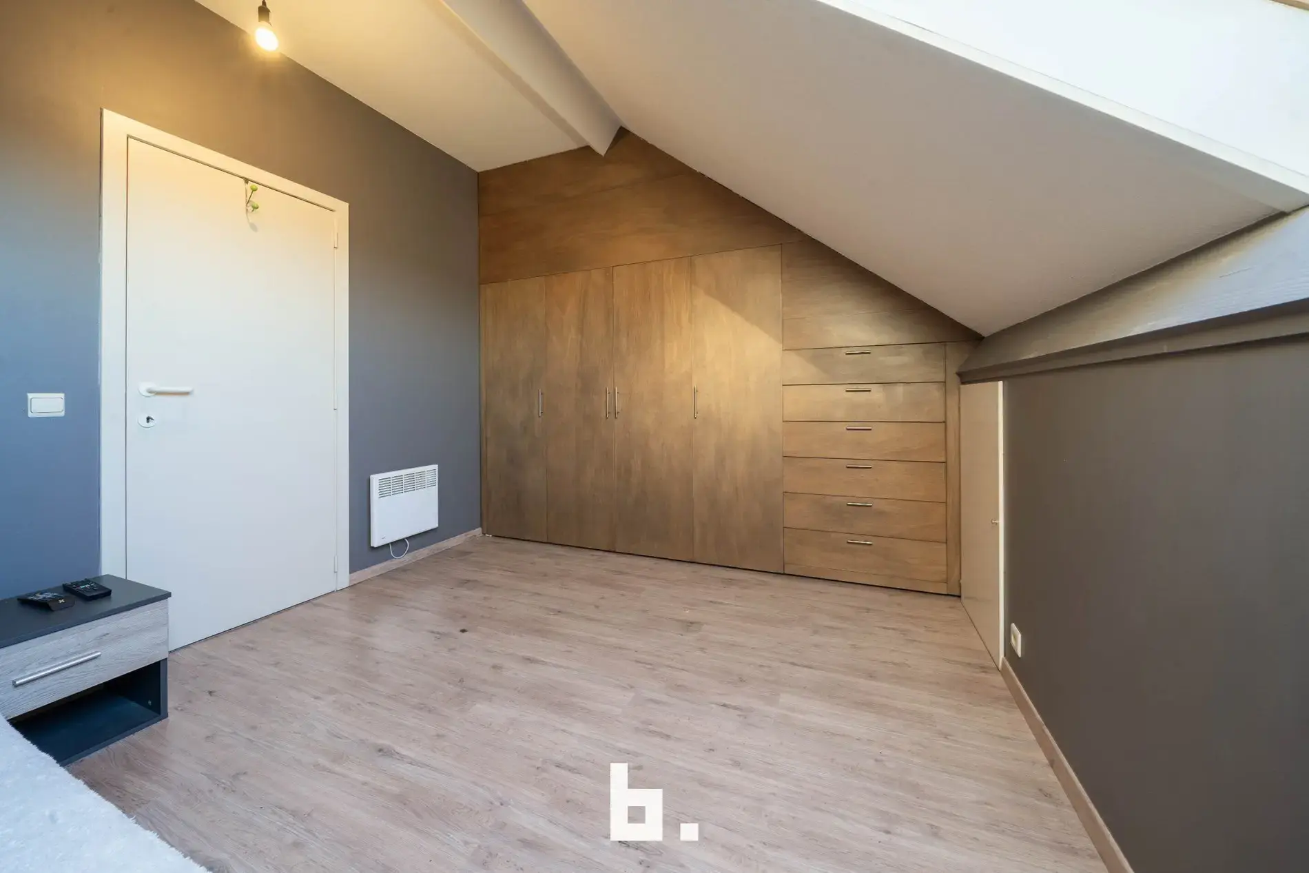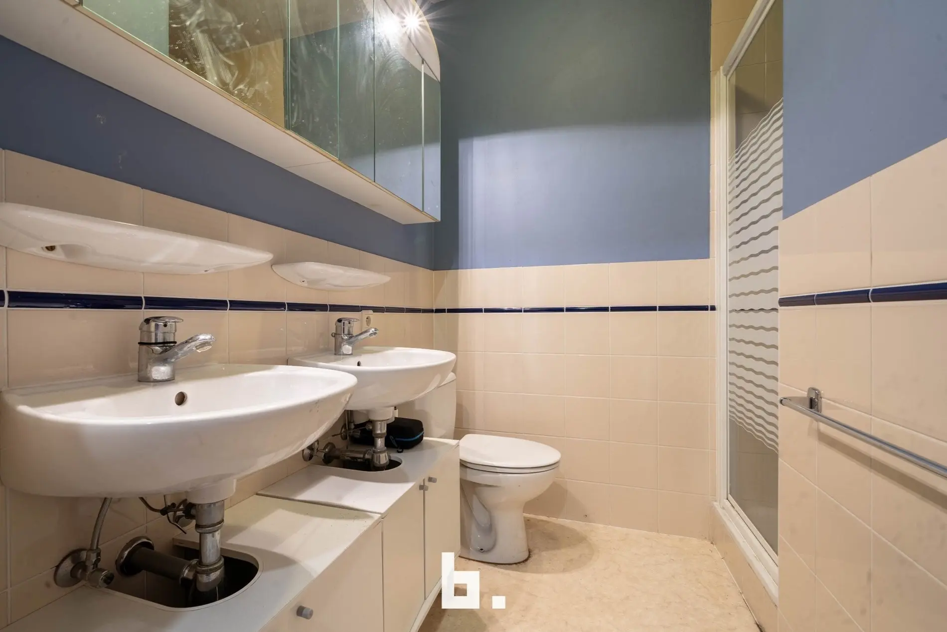 Dit duplex appartement is centraal gelegen in een rustige zijstraat van de Langestraat, net buiten het kloppend hart van centrum Brugge. De indeling is als volgt: inkom, gastentoilet, woonkamer, aparte keuken met aanpalend terras, berging/wasplaats, 1 slaapkamer. Op het verdiep: 2 slaapkamers waarvan één met grote inbouwkast, badkamer (douche, 2 wastafels, toilet). Inclusief privé (fietsen)berging achteraan het gebouw. Het appartement is op heden verhuurd aan een correcte huurder. Mogelijkheid tot aankoop van een autostaanplaats achteraan het gebouw.