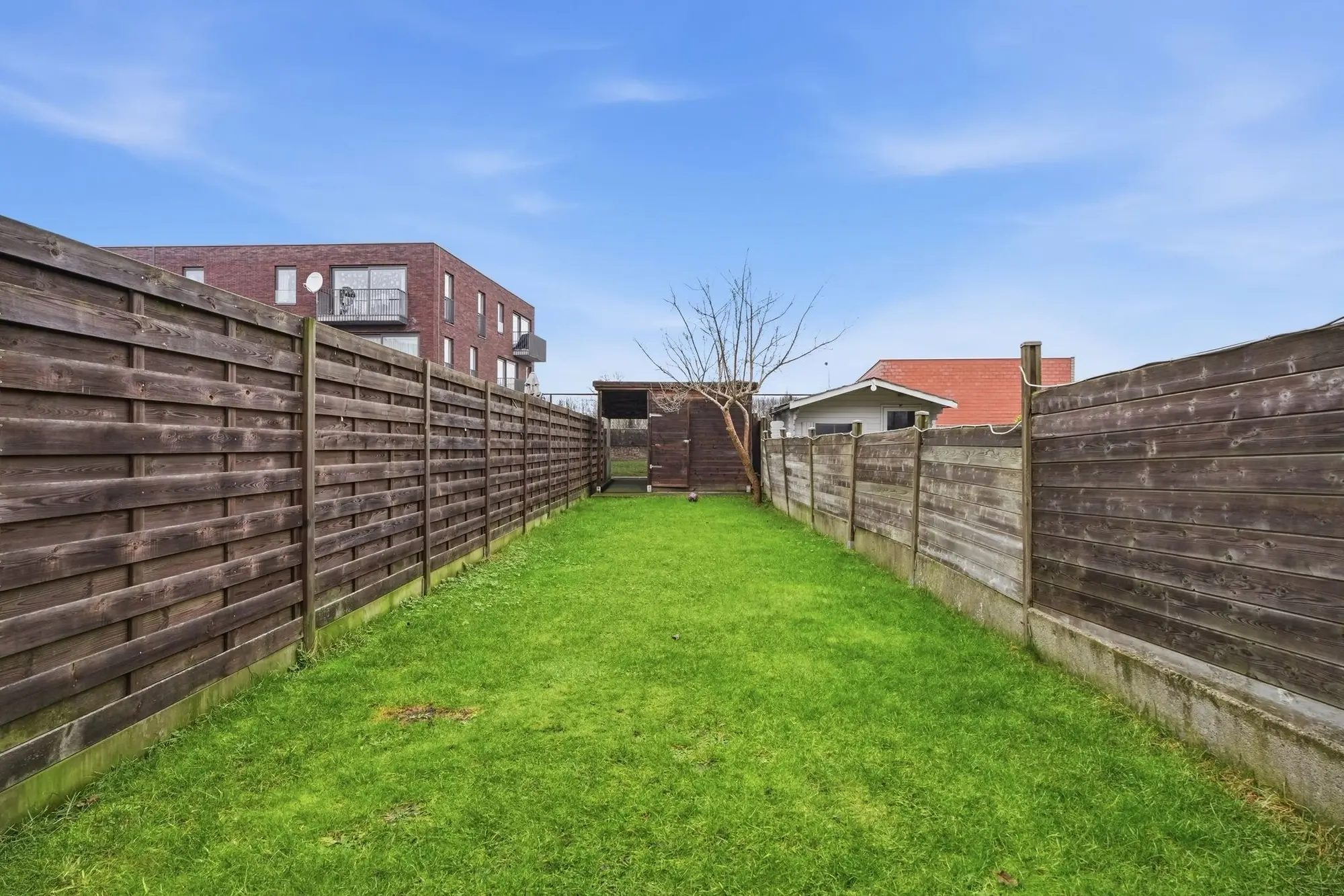 Buiten vindt u een aangenaam terras en een onderhoudsvriendelijke tuin met praktisch tuinhuis, waar het heerlijk ontspannen is na een drukke dag.