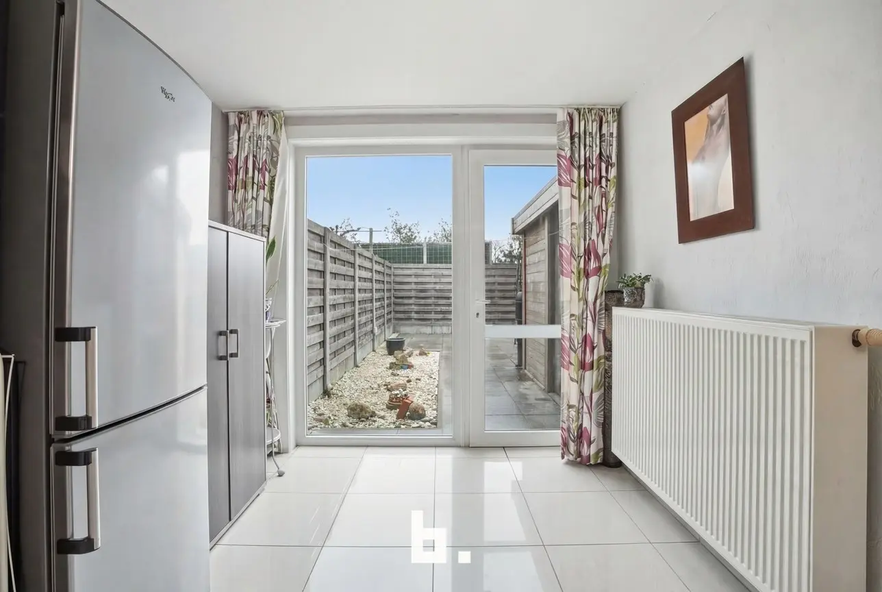 Binnen komt u terecht in een lichtrijke leefruimte, aansluitend op de volledig uitgeruste kwaliteitskeuken die drie jaar geleden nog werd vernieuwd — ideaal voor wie graag kookt en gezellig samen tafelt. Het plat dak werd recent volledig vernieuwd en voorzien van dubbele isolatie.