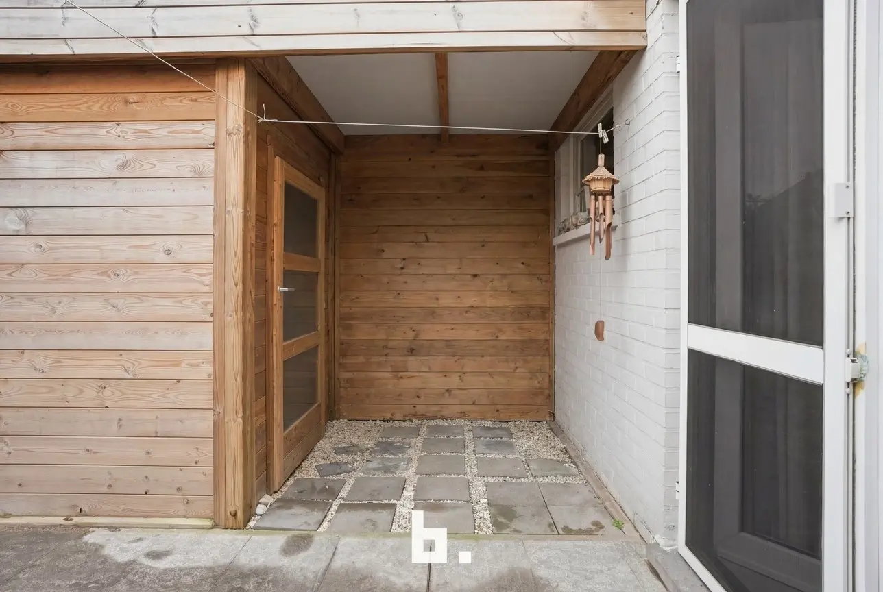 Buiten geniet u van een aangenaam terras en een onderhoudsvriendelijke tuin met praktisch tuinhuis.