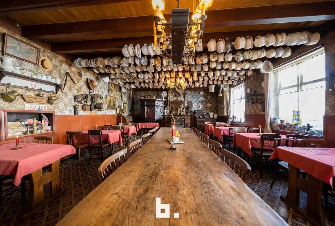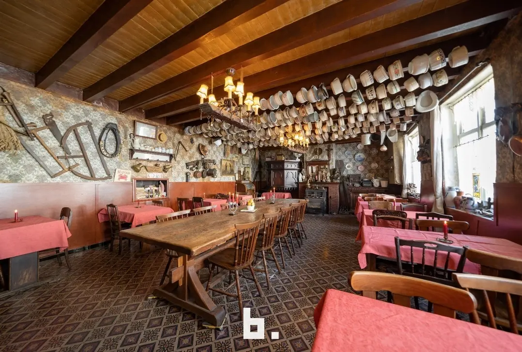 De indeling is als volgt: BENEDENVERDIEPING: café met bar, eet-/feestzaal (nog gefungeerd als gemeentehuis), keuken, ruime kelder, binnenterras, toiletten, bijgebouw/bakhuis. VOUTE: momenteel gebruikt als leefruimte/slaapkamer. ZOLDERVERDIEPING: grote te renoveren ruimte met mogelijkheid tot het creëren van diverse kamers, via een klein niveauverschil is er nog een ruimte met mogelijkheid tot 2 kamers.