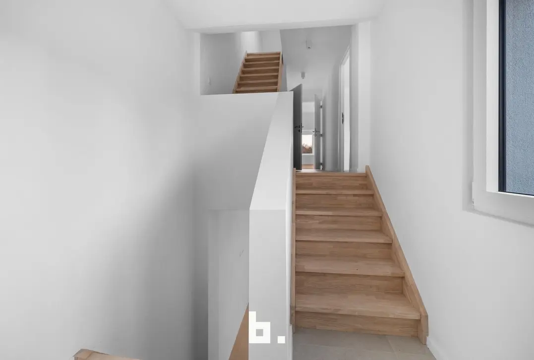 Via een vaste open trap bereikt u de zolderverdieping, waar een ruime polyvalente ruimte werd ingericht. Deze ruimte leent zich perfect als derde slaapkamer, bureau of hobbyruimte.