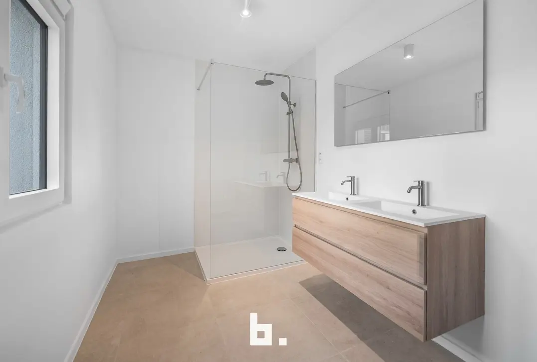 Op de eerste verdieping bevinden zich twee volwaardige slaapkamers, waarvan één slaapkamer de mogelijkheid biedt tot het creëren van een dressing of aparte bureauruimte. Verder is er een moderne badkamer uitgerust met een inloopdouche en bevindt zich in de nachthal een apart toilet.