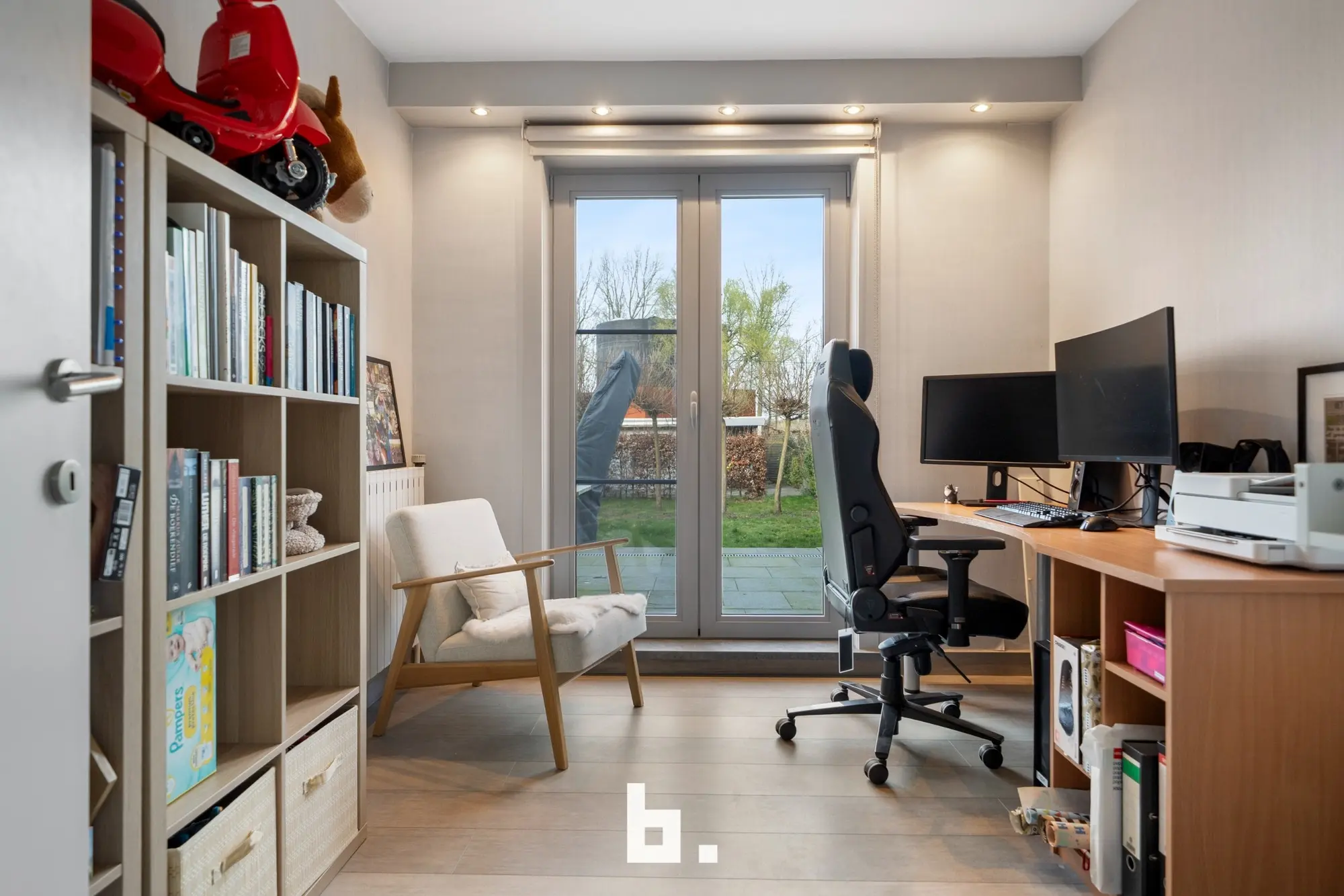 In een rustige doodlopende straat bevindt zicht deze mooie door de jaren heen gerenoveerde woning met openzicht op de velden. De woning beschikt over 2 privatieve staanplaatsen en 1 inpandige garage. Op het gelijkvloers bevinden zich 3 ruime slaapkamers. Het eerste verdiep omvat een zeer ruime, lichtrijke leefruimte met open keuken en aparte badkamer en vestiaire. Tevens is er ook de mogelijkheid om rechtstreeks van het eerste verdiep vanop het terras met de buitentrap de tuin te betreden. Het open zicht op de velden is hier dan ook de grote troef! Kortweg, wie ruimte en rust wilt met een mooie tuin en alle faciliteiten dicht in de buurt.