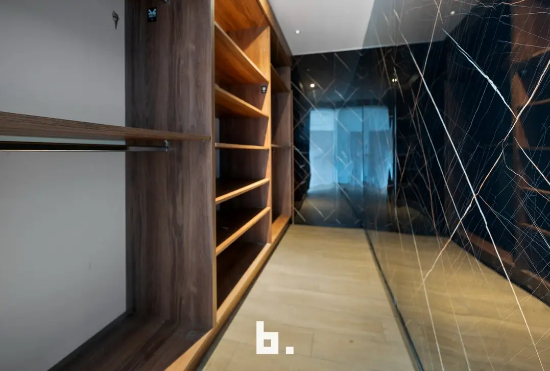 Indeling: De woning kom je binnen via de inkomhal, eerst komen we de badkamer met wasplaats tegen. De tweede deur het gastentoilet. Verder kom je uit in de leefruimte en keuken. Via de leefruimte hebben we de trap naar boven waar er twee ruime slaapkamers zijn met een dakterras. Nog een verdieping hoger vinden we nog twee kinderkamers. Als we terug op het gelijkvloers zijn komen we via de dubbele deur aan de keuken uit in de tweede gang met tweede badkamer, tweede toilet en tweede wasplaats. Verder hebben we de ruime inpandige garage. In die gang komen we via de trap boven in een tweede keuken met leefruimte, daarnaast een masterbedroom met dressing en een tweede dakterras achteraan de woning.