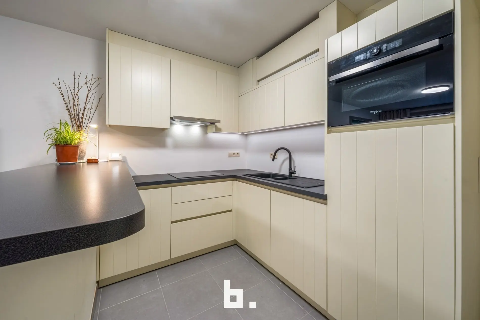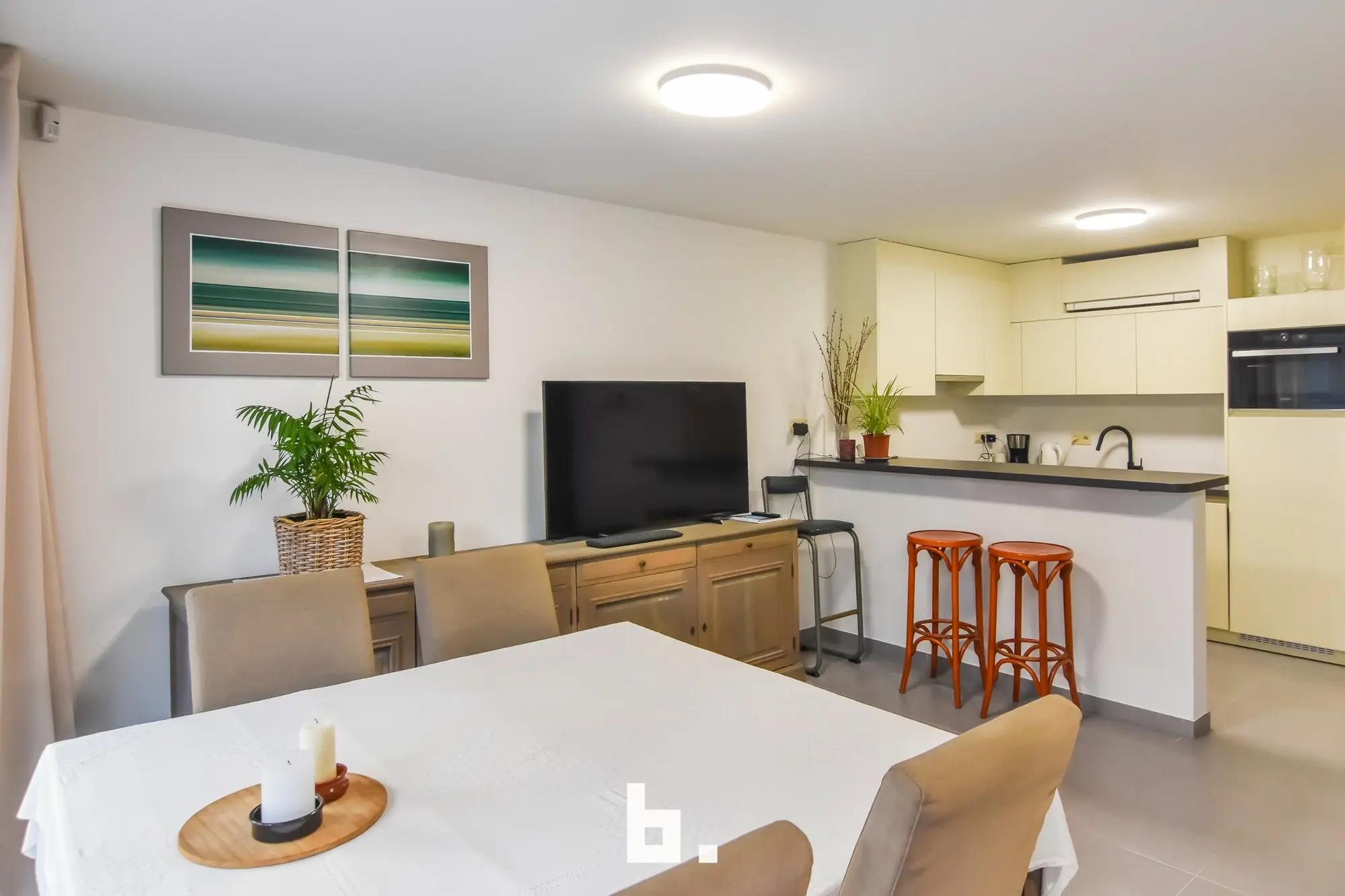 Het gelijkvloers is momenteel nog volledig in te richten en biedt tal van mogelijkheden, zoals een atelier, studio, extra leef- of werkruimte, of het creëren van twee bijkomende slaapkamers. Een open keuken en een apart toilet zijn reeds voorzien.