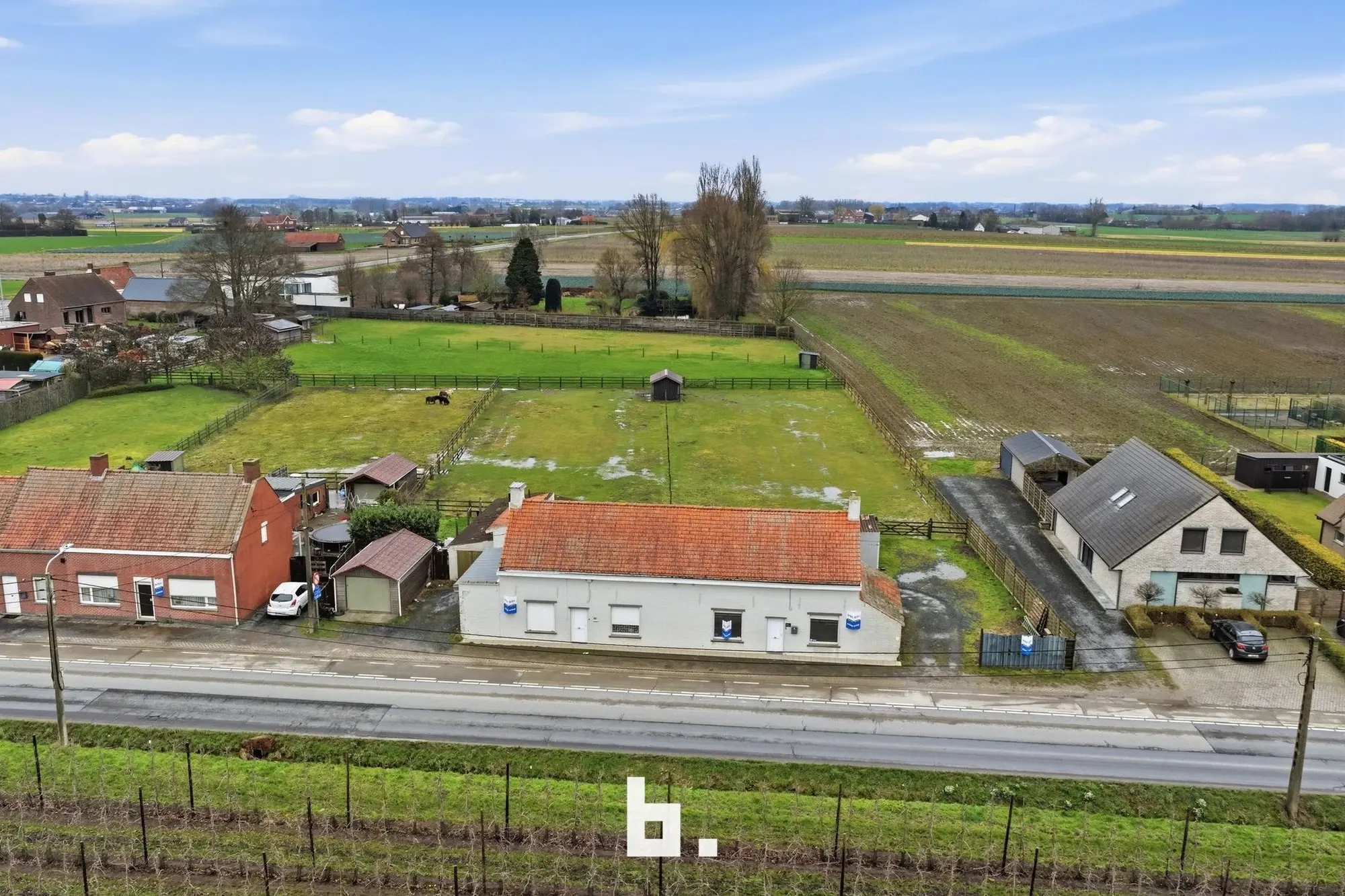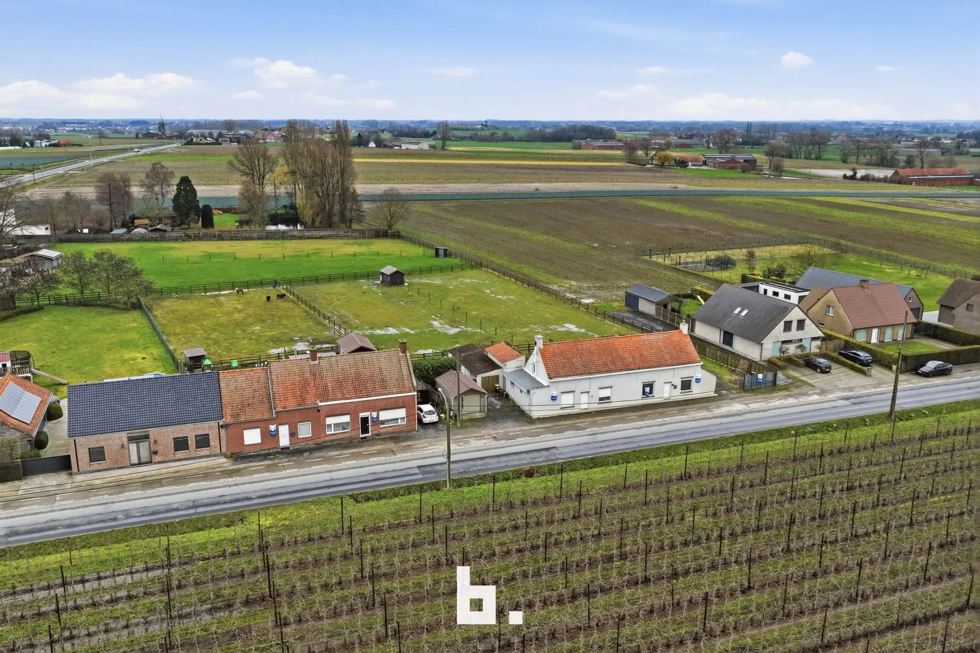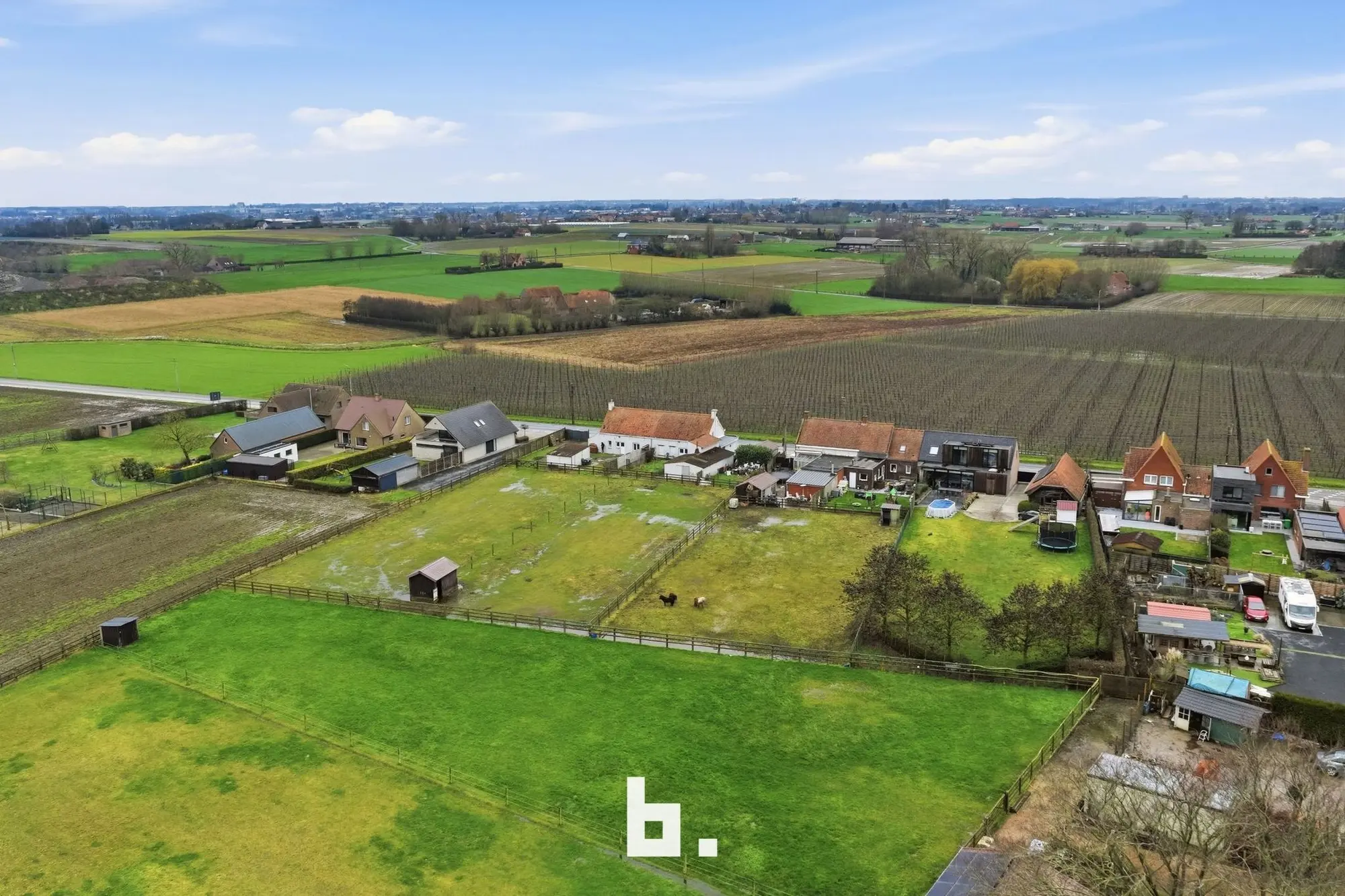 Unieke troef: deze woning maakt deel uit van een rij van 4 naast elkaar gelegen panden, samen goed voor bijna 5.000 m² grond.