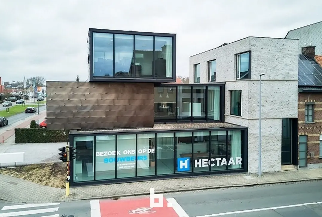 Langs een belangrijke invalweg in Roeselare vind je dit architecturaal meesterwerk van CAAN architecten. Met zijn strakke kubusvormen, zinken gevel en indrukwekkende glaspartijen is dit gebouw een absolute eyecatcher en ideaal visitekaartje voor je onderneming.