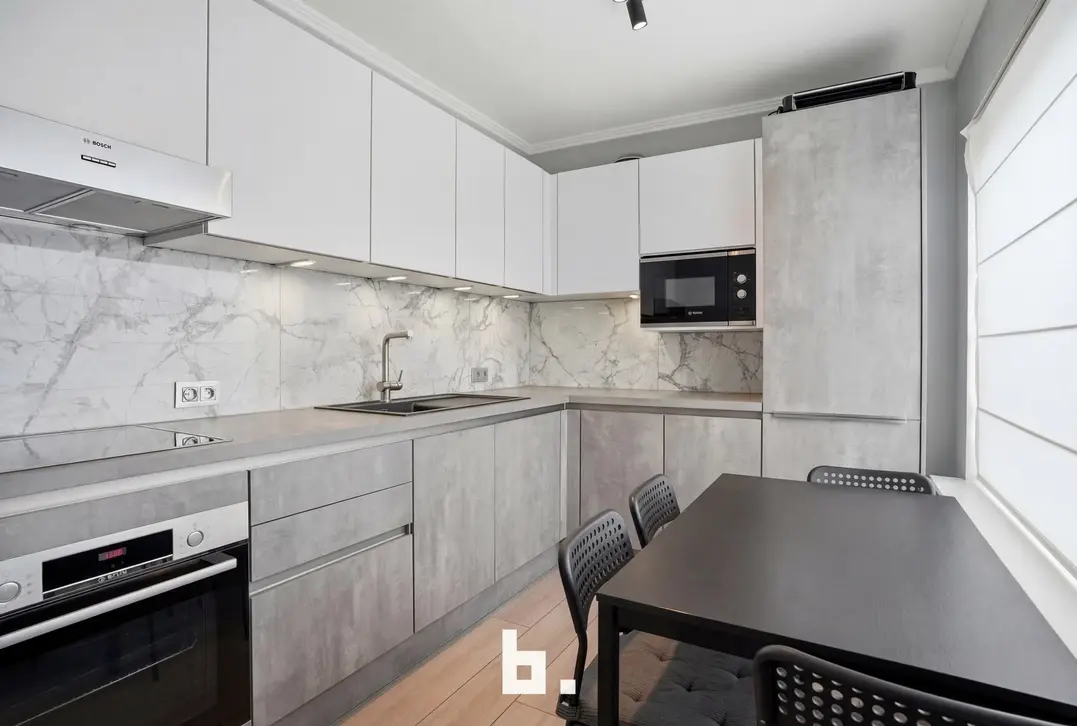De leefruimte vormt het kloppende hart van het appartement. Dankzij de grote raampartijen geniet u van veel natuurlijk licht en een aangenaam open gevoel waar wonen, eten en ontspannen moeiteloos samenkomen.