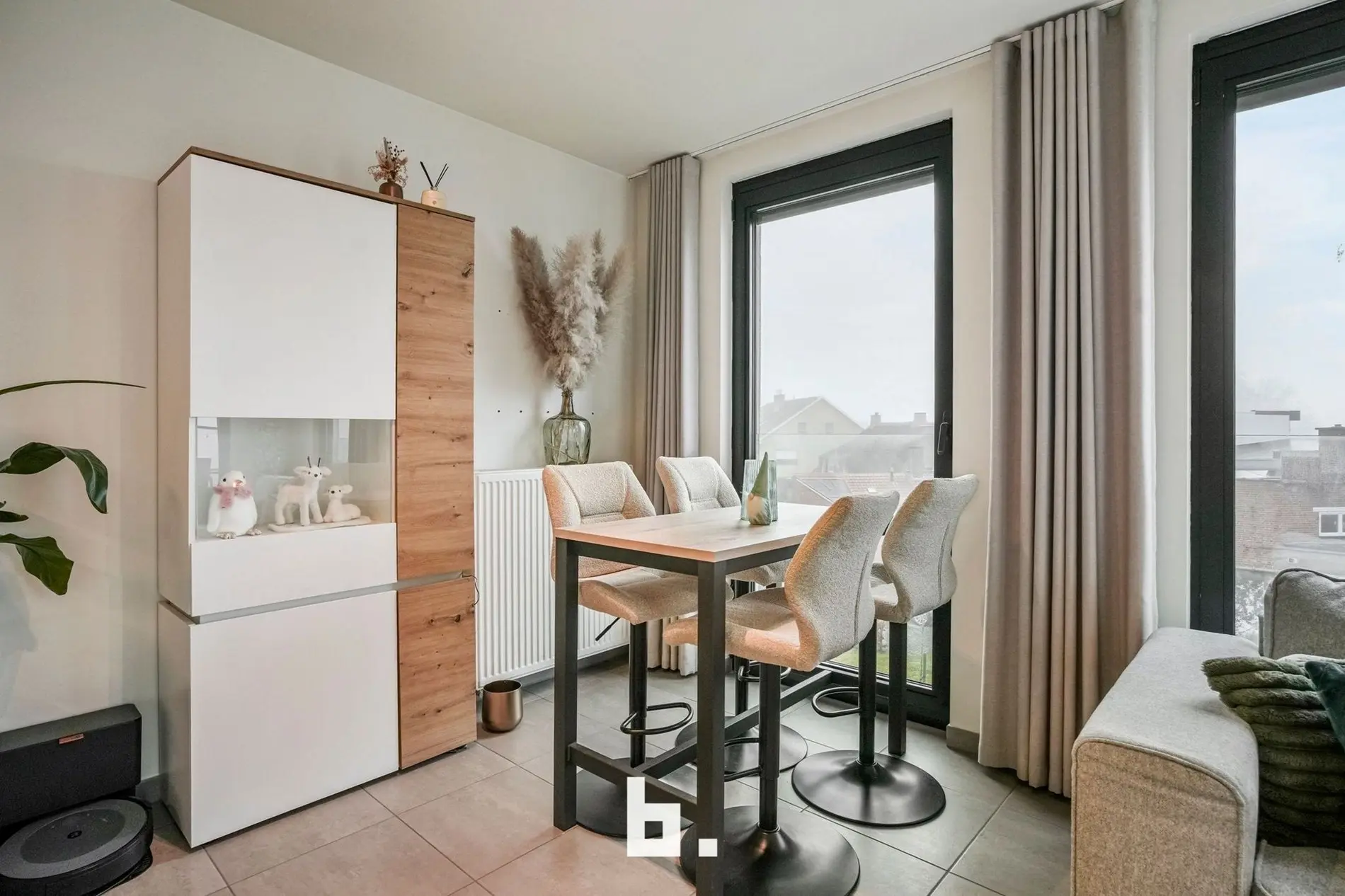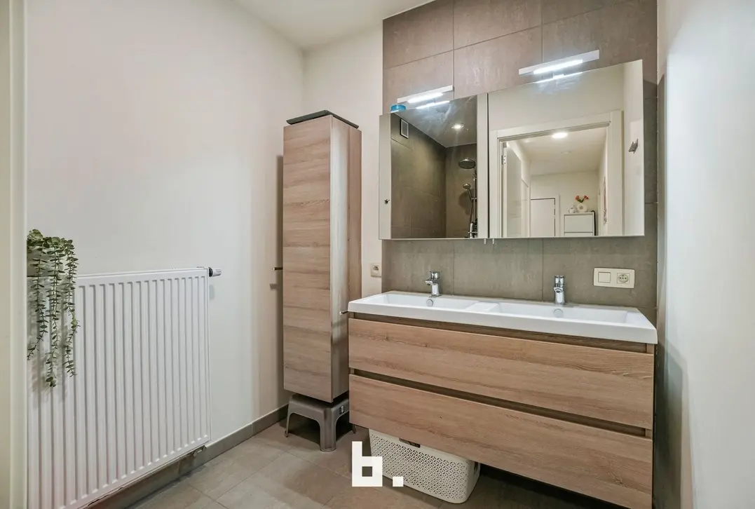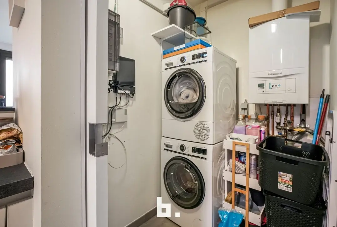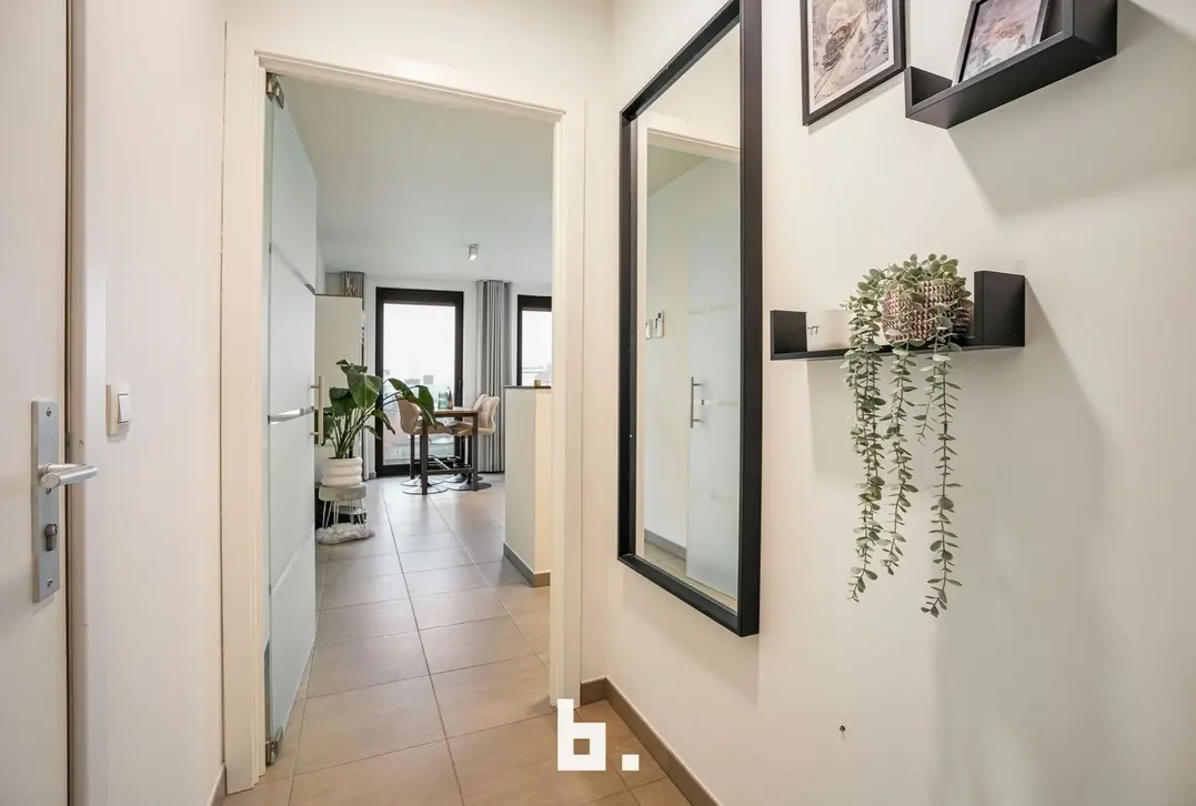 Bij het binnenkomen valt meteen de verzorgde en harmonieuze uitstraling op. Het appartement werd recent volledig opnieuw geschilderd en is uitgerust met op maat gemaakte inbouwkasten die niet alleen esthetisch, maar ook uiterst praktisch zijn. De lichtrijke leefruimte sluit naadloos aan op de volledig uitgeruste keuken en vormt een aangename plek om te ontspannen of gasten te ontvangen.