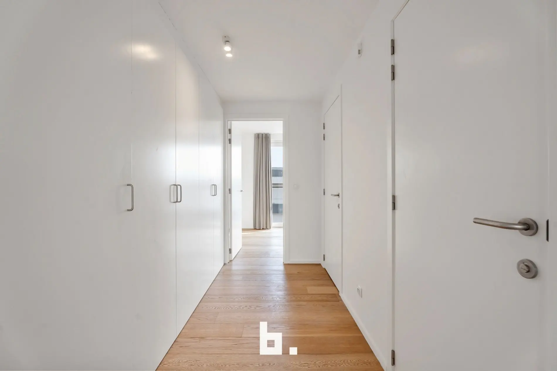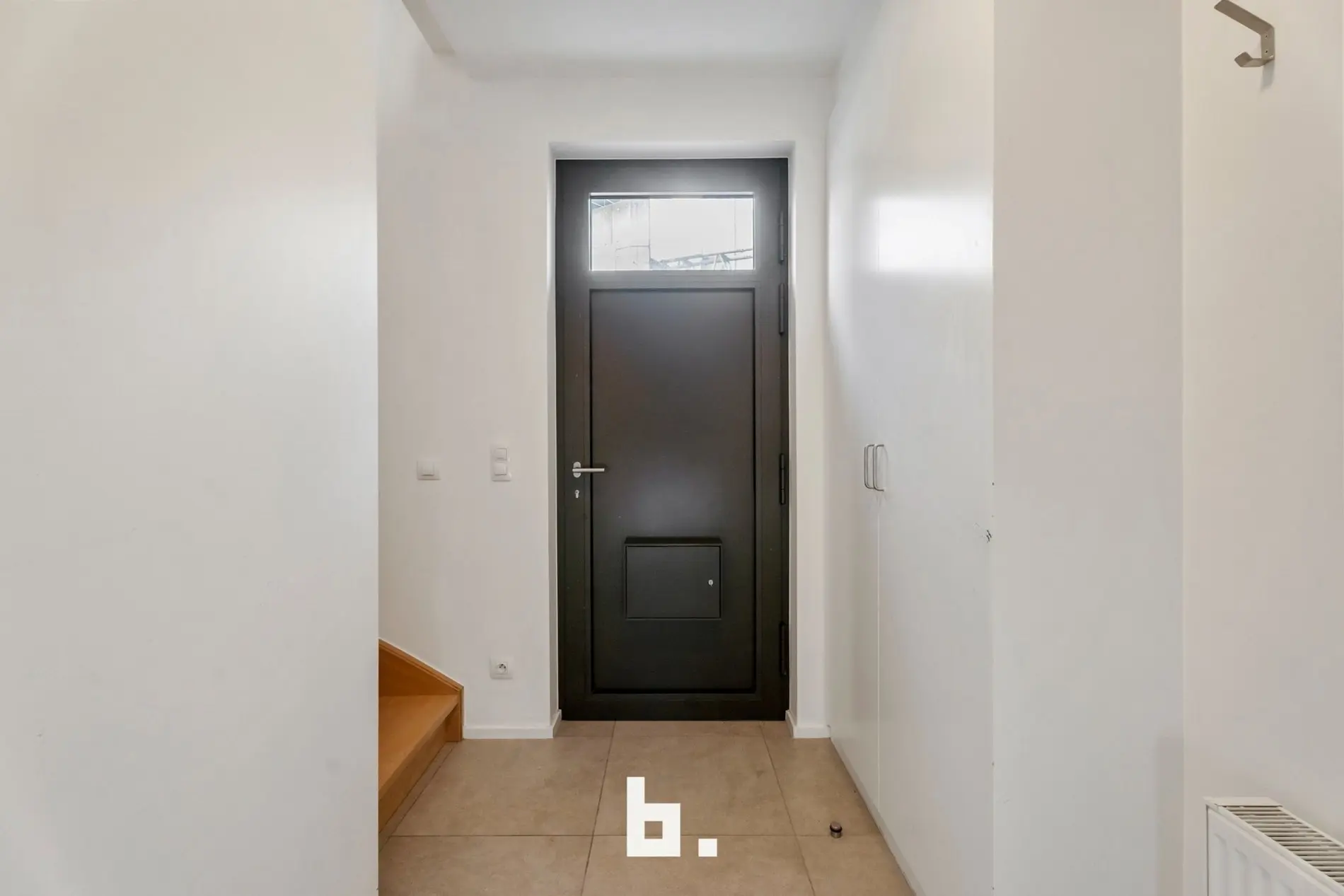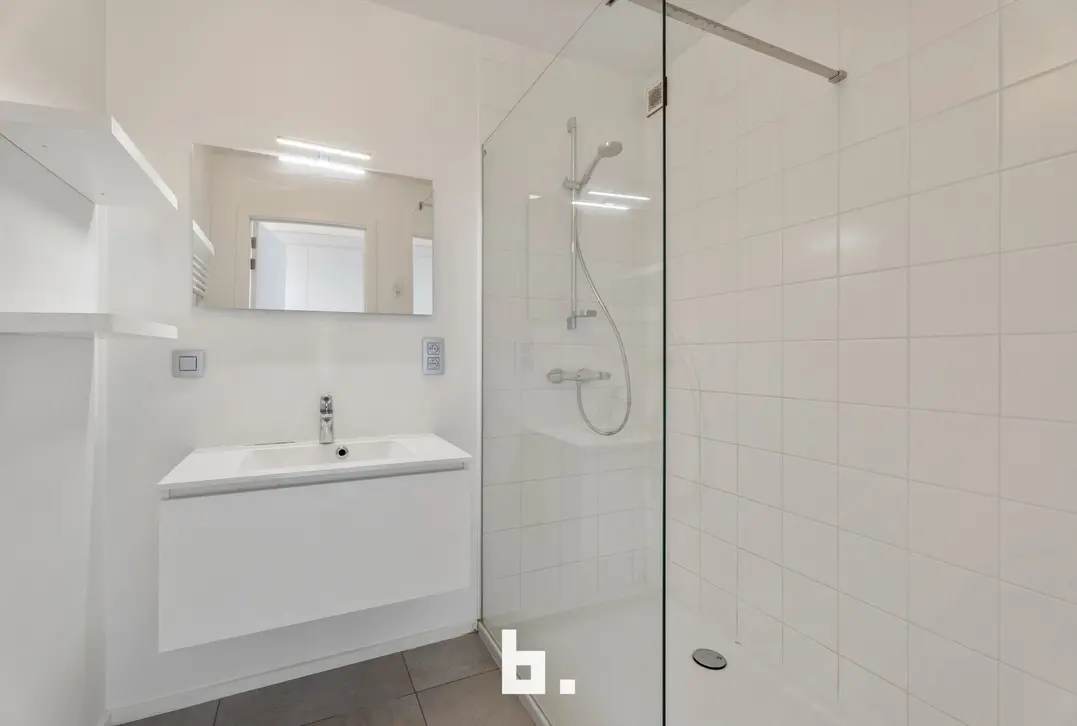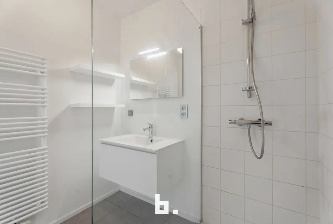 Bij het binnenkomen op het gelijkvloers word je verwelkomd in een verzorgde inkomhal met gastentoilet. Via de tussendeur heb je toegang tot de gemeenschappelijke doorrit en natuurlijk je eigen garage – altijd handig en veilig.