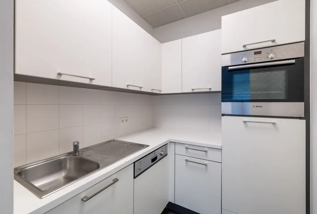 Het kantoor is praktisch ingericht en beschikt over een uitgeruste keuken, een terras en toegang tot een daktuin, wat zorgt voor aangename werkomgeving.
