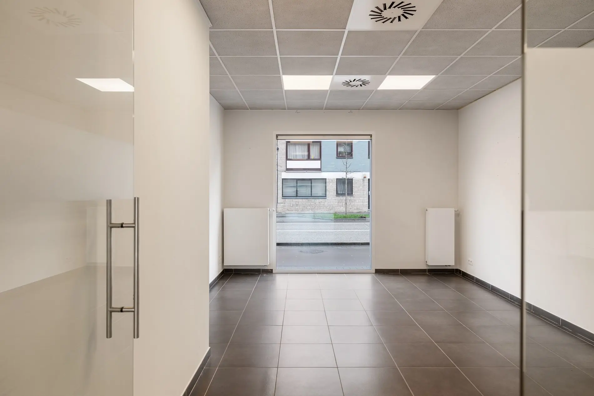 Het kantoor is praktisch ingericht en beschikt over een uitgeruste keuken, een terras en toegang tot een daktuin, wat zorgt voor aangename werkomgeving.
