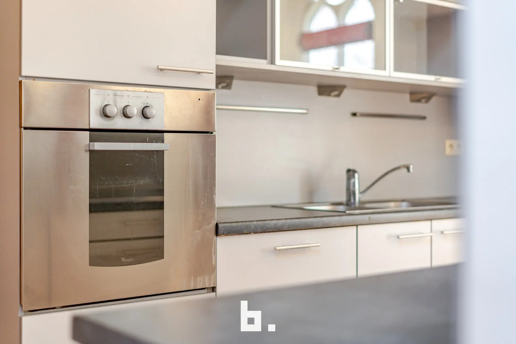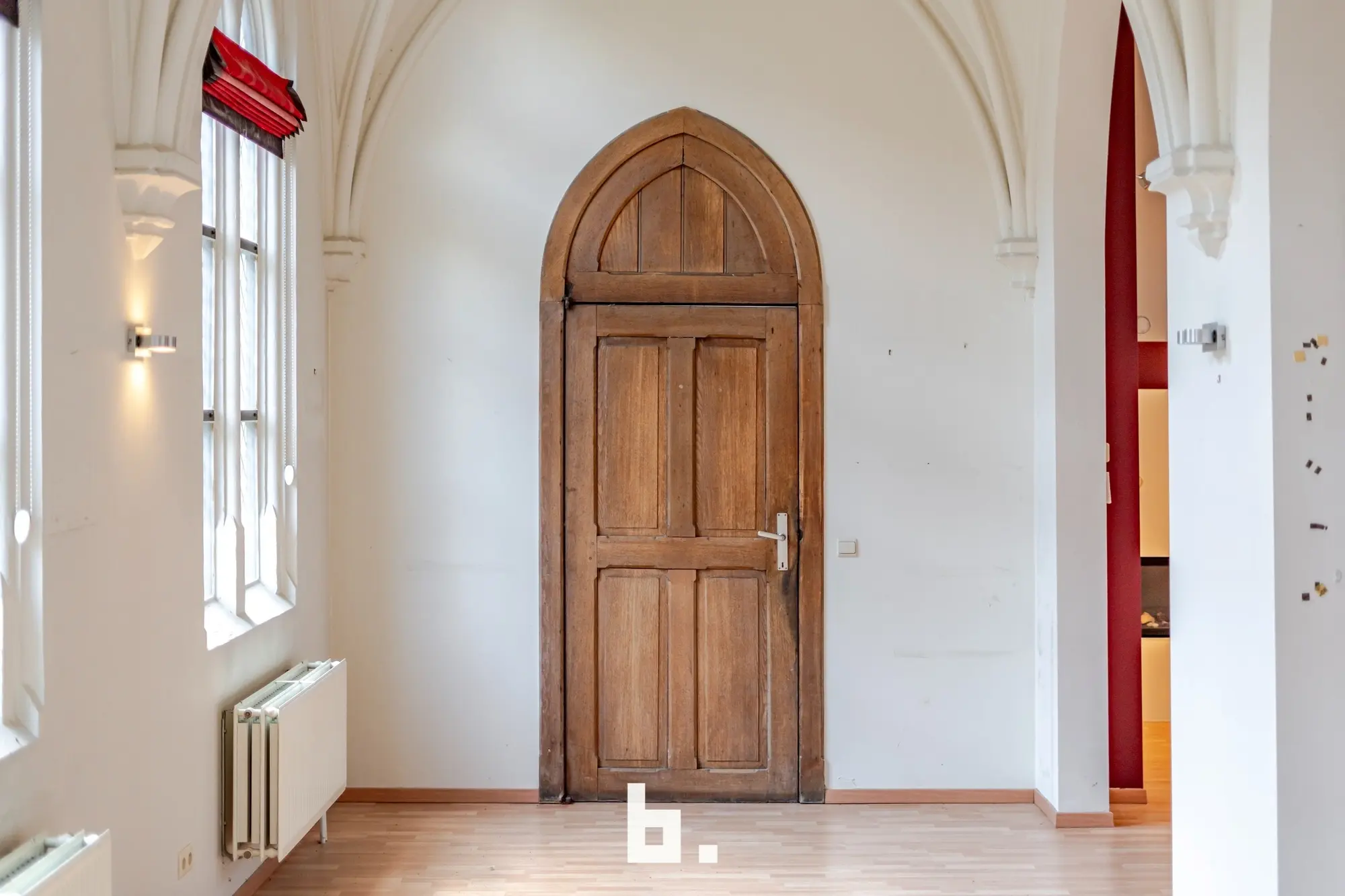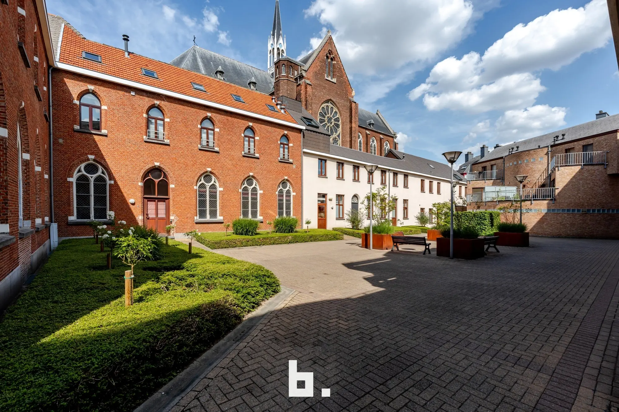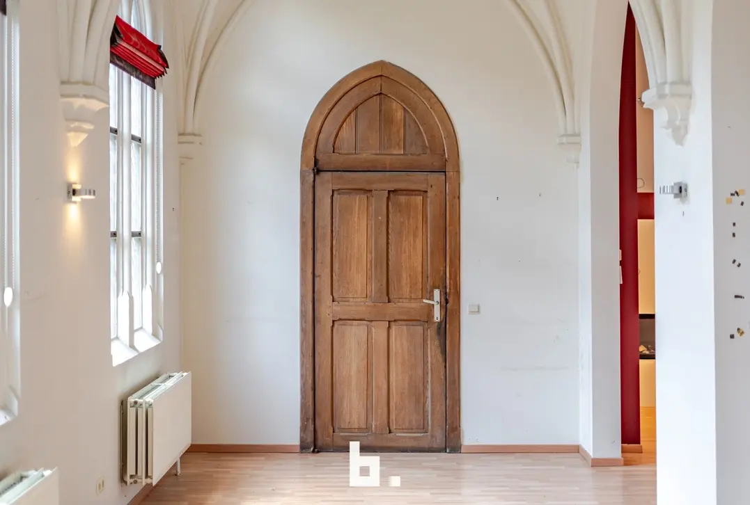 Deze uitzonderlijke woning bevindt zich in de neogotische kloostervleugel van site 'Patershof', die is omgetoverd naar een voortreffelijke residentie. Een enorm ruimtegevoel werd gecreëerd door o.a. grote raampartijen en goede vormgeving waarbij het behoud van authentieke elementen centraal staan. Via het gezellige groene binnenplein kan u de woning bereiken. Bij het betreden van het pand krijg je een instant wauw-gevoel door de hoge plafonds, de authentieke booggewelven en glasramen die verwerkt zijn in de woonruimte. De leef- en eetruimte vormen samen met de open keuken een mooi geheel waardoor je een leuke interactie ervaart tussen de ruimtes. De keuken is volledig uitgerust met kasten, toestellen en extra bergruimten (voorraadberging). Via de leefruimte kan u via het dubbel deurraam het terras betreden.