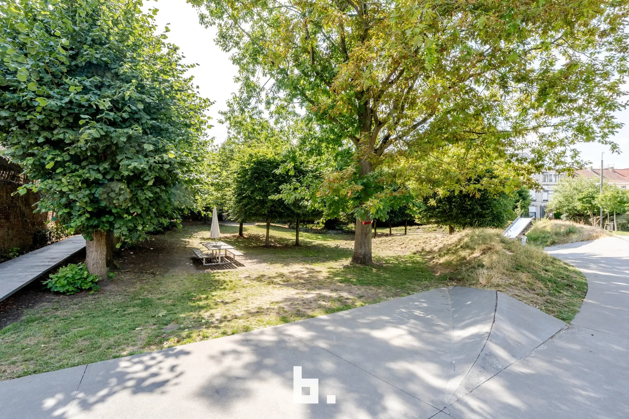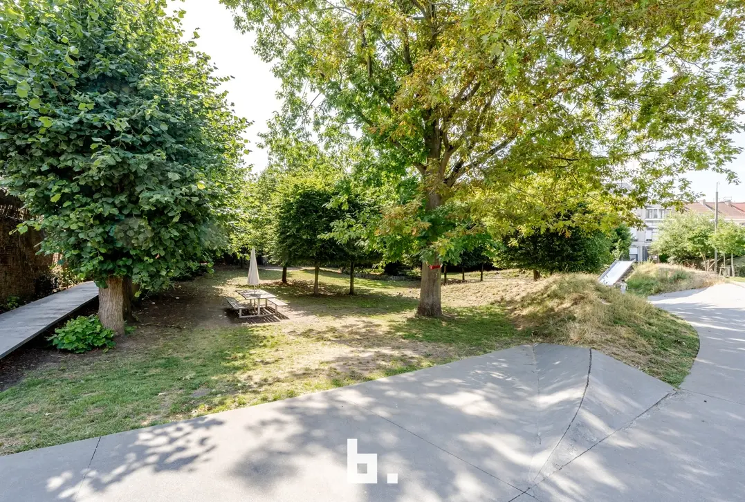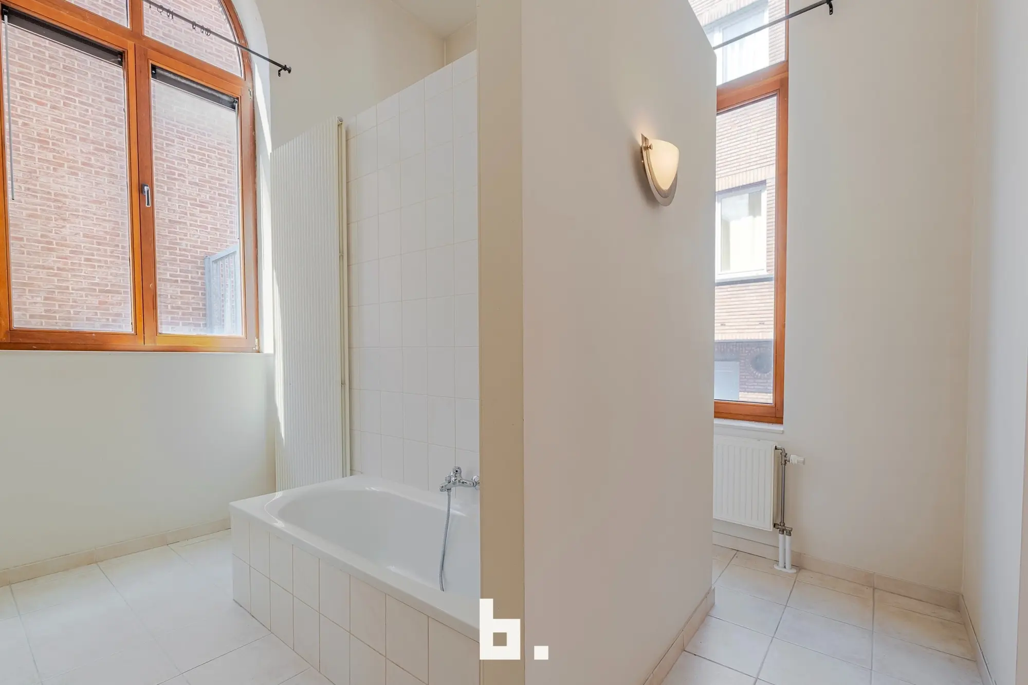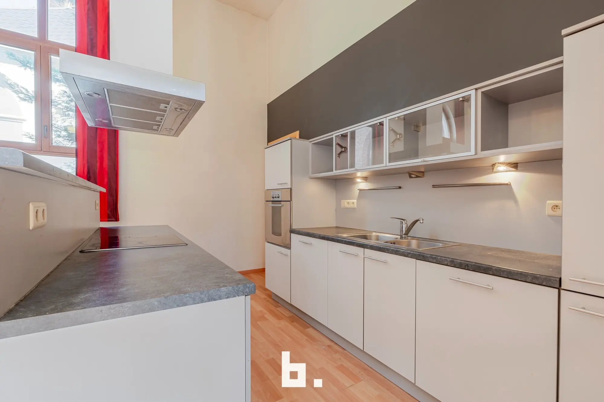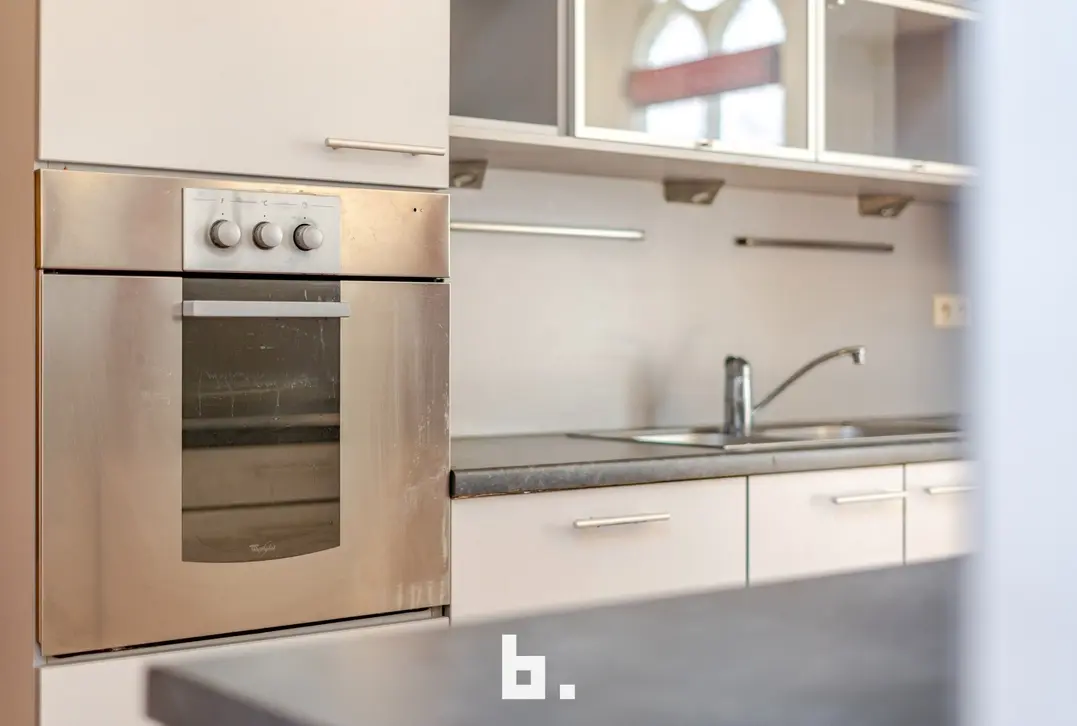 Deze uitzonderlijke woning bevindt zich in de neogotische kloostervleugel van site 'Patershof', die is omgetoverd naar een voortreffelijke residentie. Een enorm ruimtegevoel werd gecreëerd door o.a. grote raampartijen en goede vormgeving waarbij het behoud van authentieke elementen centraal staan. Via het gezellige groene binnenplein kan u de woning bereiken. Bij het betreden van het pand krijg je een instant wauw-gevoel door de hoge plafonds, de authentieke booggewelven en glasramen die verwerkt zijn in de woonruimte. De leef- en eetruimte vormen samen met de open keuken een mooi geheel waardoor je een leuke interactie ervaart tussen de ruimtes. De keuken is volledig uitgerust met kasten, toestellen en extra bergruimten (voorraadberging). Via de leefruimte kan u via het dubbel deurraam het terras betreden.