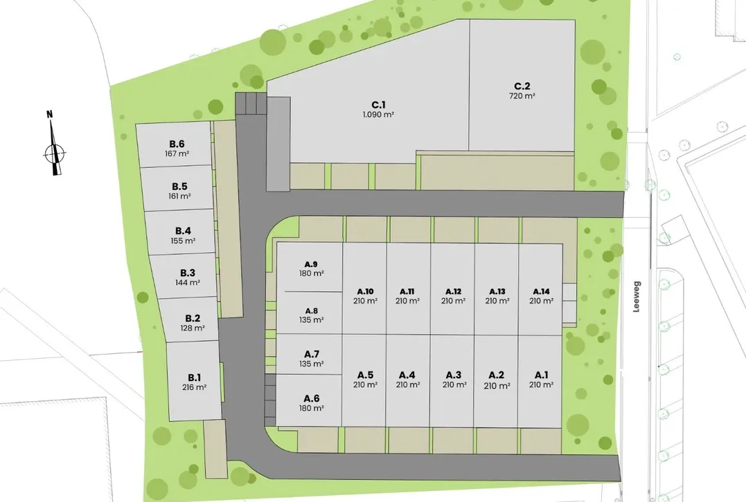 Deze unit heeft een oppervlakte van 210 m², 2 parkeerplaatsen en een prijs van 384.750 euro (ex BTW)
