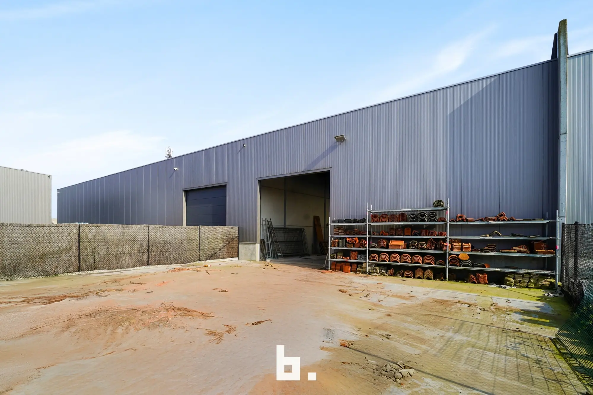 Deze multi- functionele loods is uitgerust met een 2 automatische sectionaalpoorten en een aparte inkomdeur met groot lichtstraat, wat zorgt voor aangename lichtinval.