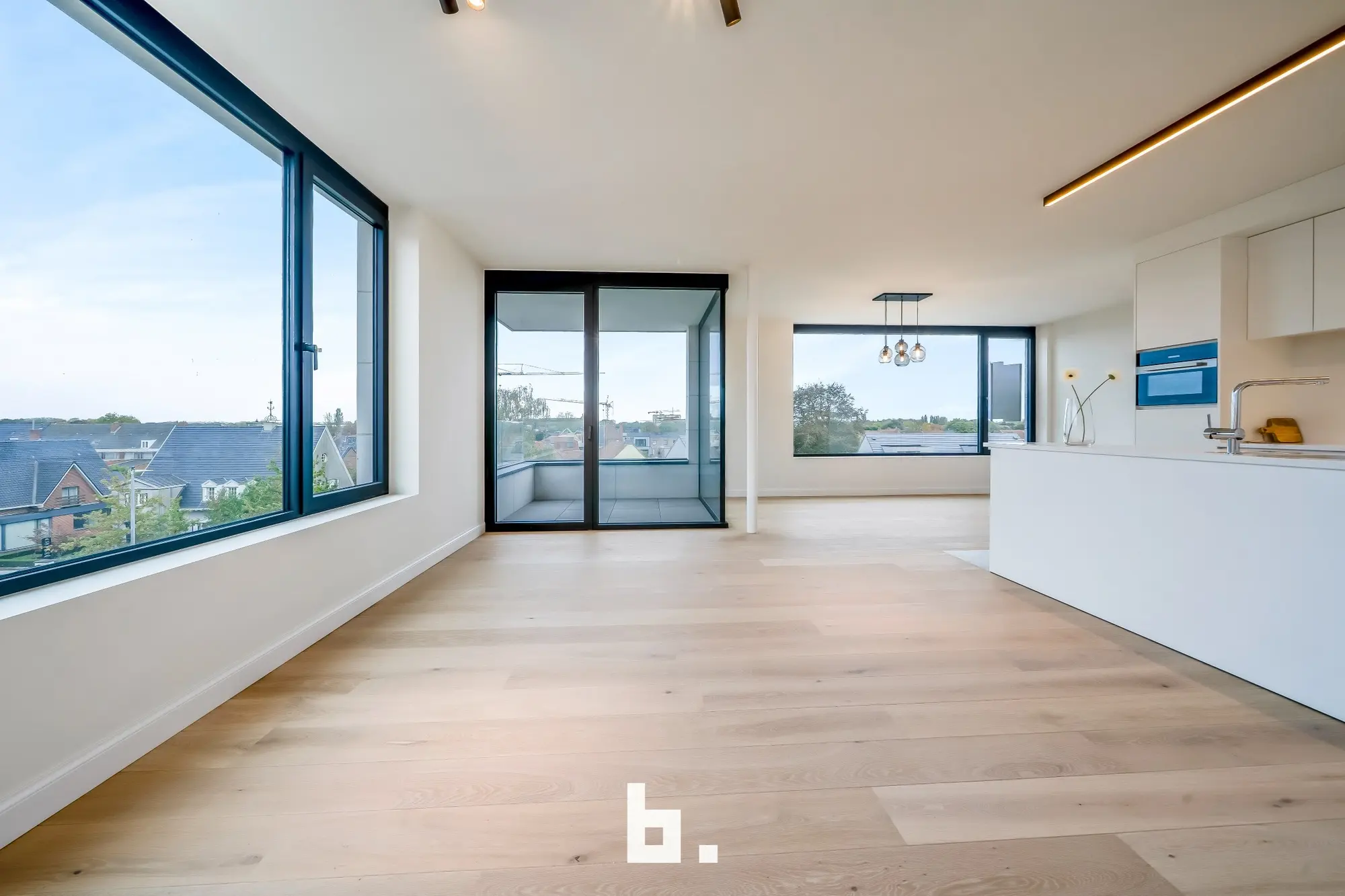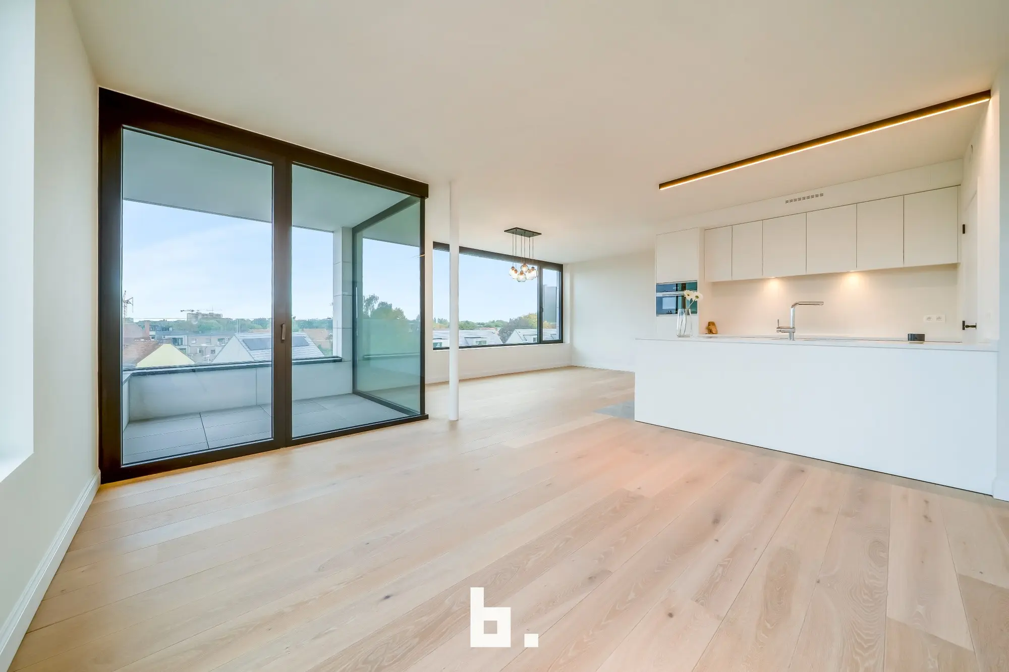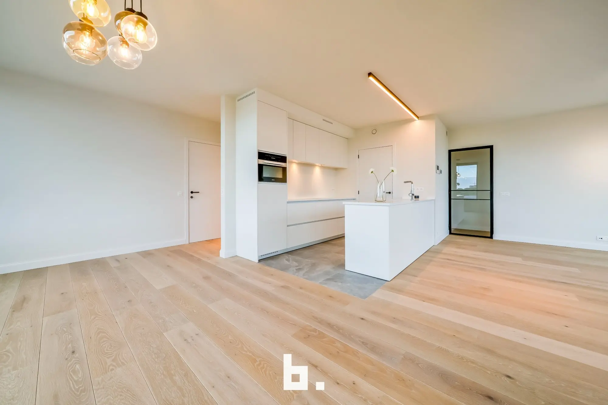 De royale, lichte woonruimtes met grote ramen zorgen voor een open en aangenaam leefgevoel. De keuken vormt het pronkstuk van het appartement: een op maat gemaakte keuken met een werkblad van natuursteen, een centraal kookeiland en hoogwaardige MIELE-apparatuur. Elk appartement beschikt daarnaast over twee volwaardige slaapkamers, een badkamer met inloopdouche, een dubbele wastafel en een extra toilet.
