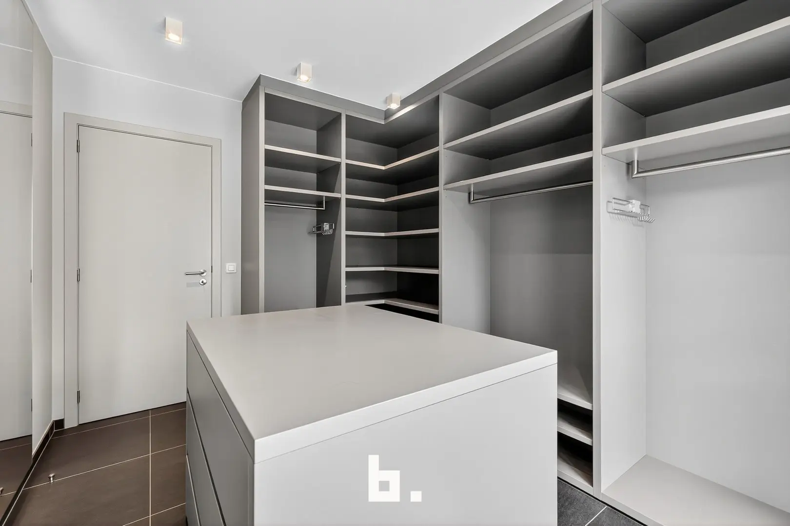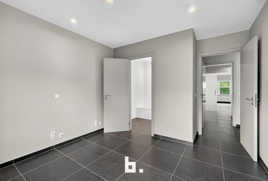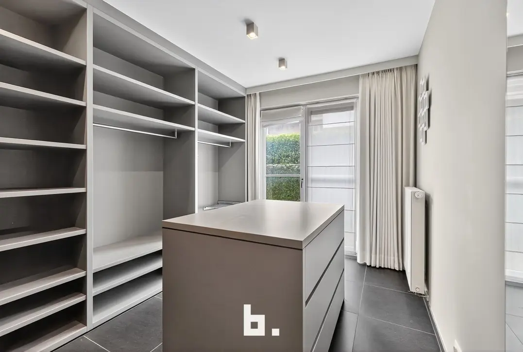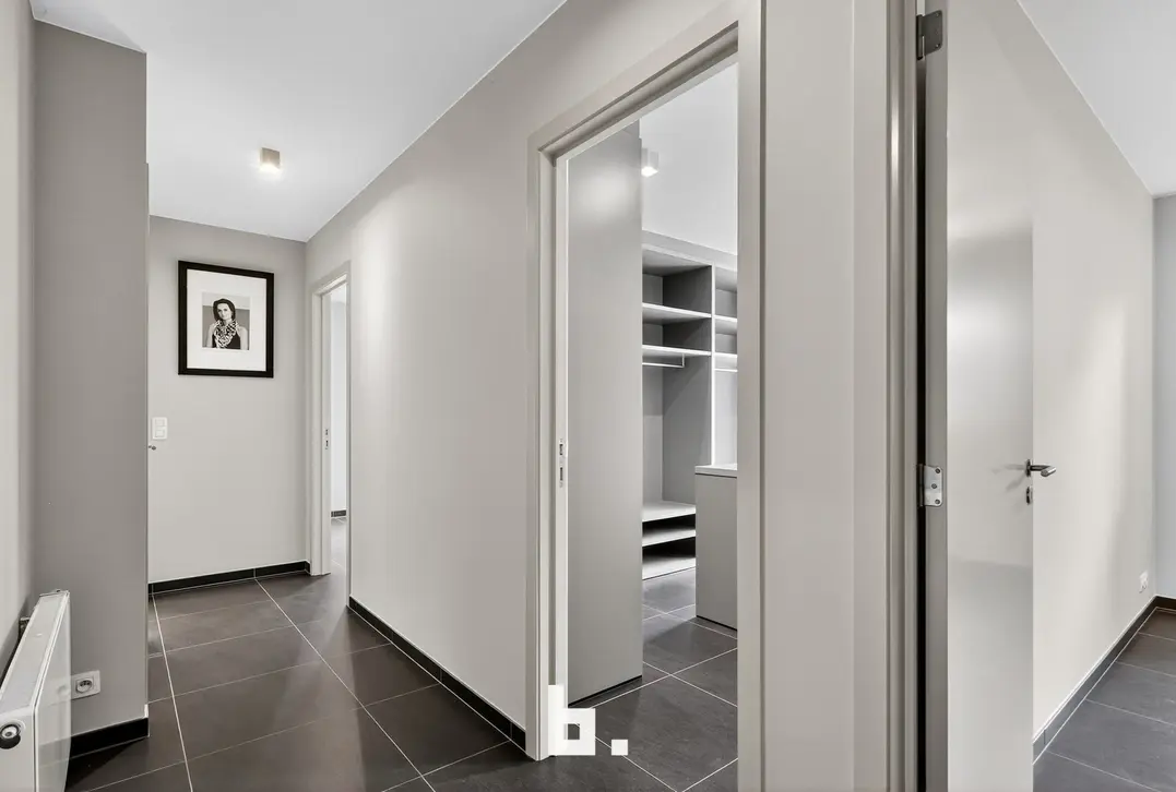 Het appartement beschikt over drie slaapkamers, waarvan één met ensuite badkamer. De tweede slaapkamer doet momenteel dienst als dressing, en er is bovendien nog een volwaardige tweede badkamer aanwezig. Een praktische wasplaats en technische berging bieden extra comfort en functionaliteit.