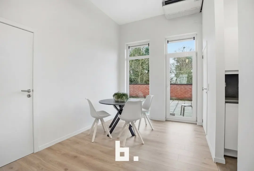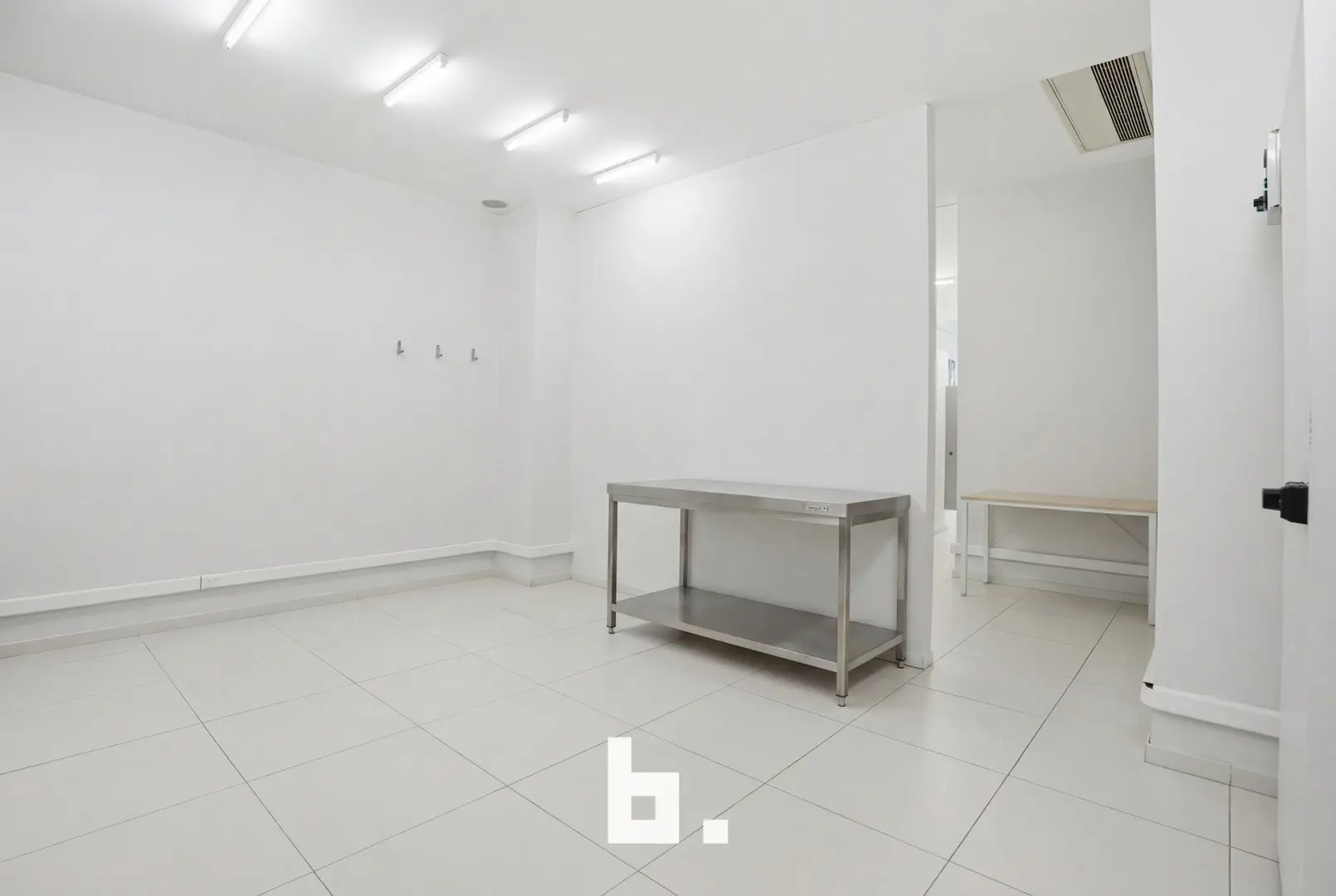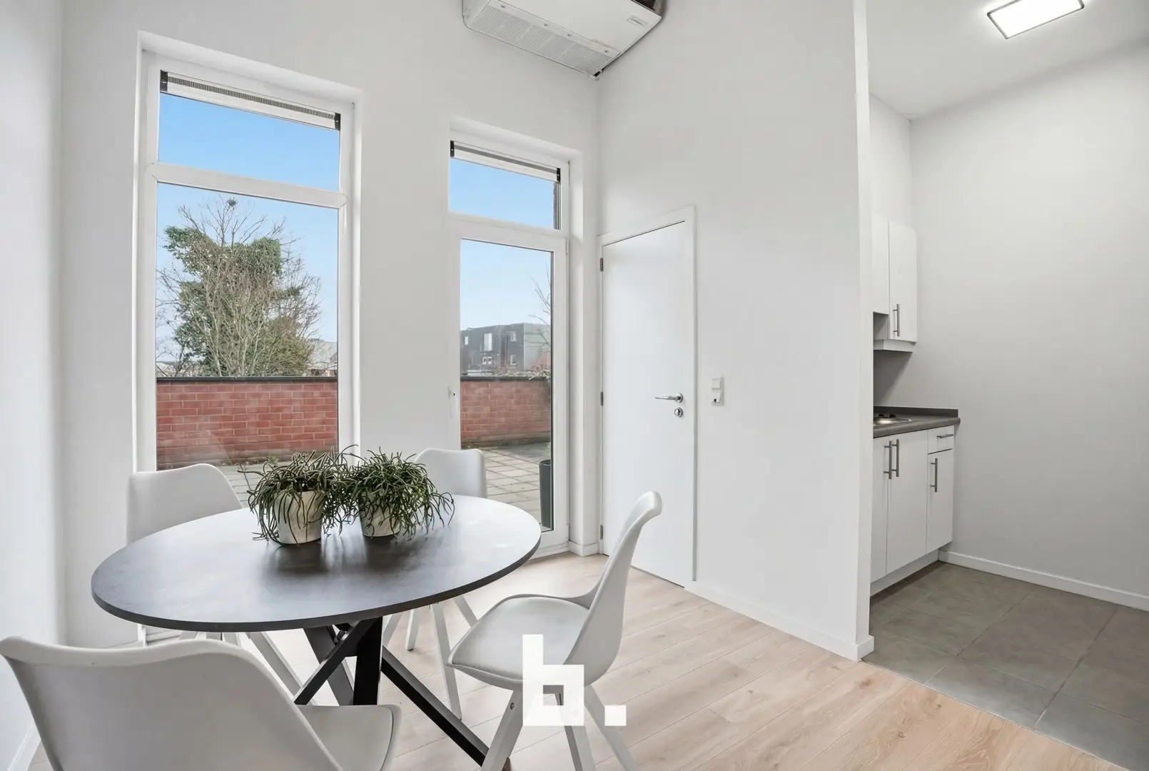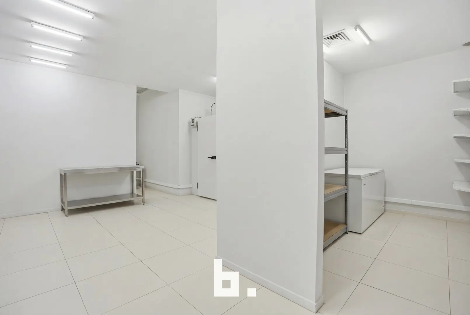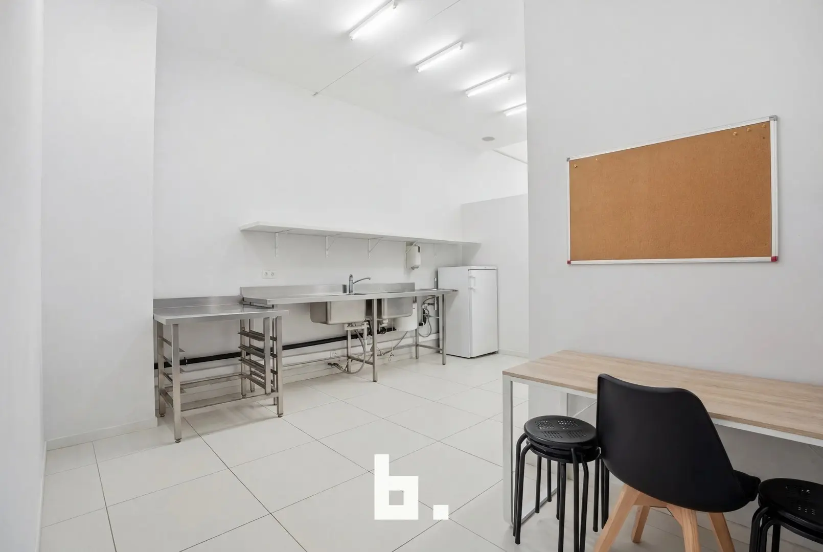De gelijkvloerse handelsruimte van 97 m² is strak en hedendaags afgewerkt en leent zich perfect voor uiteenlopende commerciële activiteiten zoals kleinhandel, retail, kantoor of dienstverlening. Op de eerste verdieping bevindt zich bijkomend 67 m² aan ruimte, ideaal als privéruimte, stockruimte of ondersteunende functie en een ruim terras.