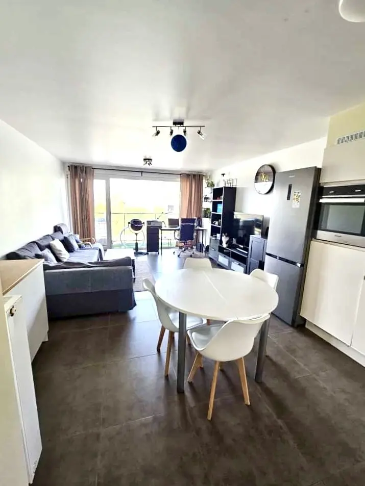 Op de tweede verdieping van de recente residentie "James Cook", vinden we dit modern appartement terug. Praktisch ingedeeld in een inkomhal, leefruimte met open keuken en terras voorzijde, gastentoilet en 2 volwaardige slaapkamers De residentie in modern en zéér goed onderhouden. Er is ook een gemeenschappelijke fietsenberging aanwezig! Uitstekend gelegen in de onmiddellijke nabijheid van tram, bus, school, winkels en warenhuizen om de hoek.