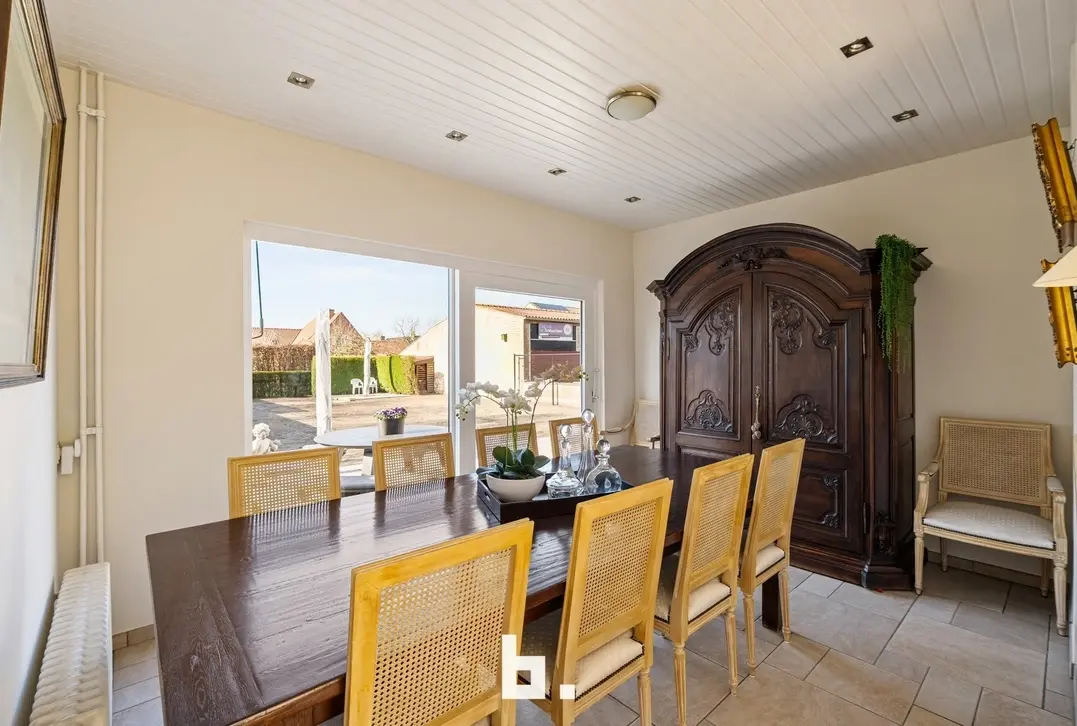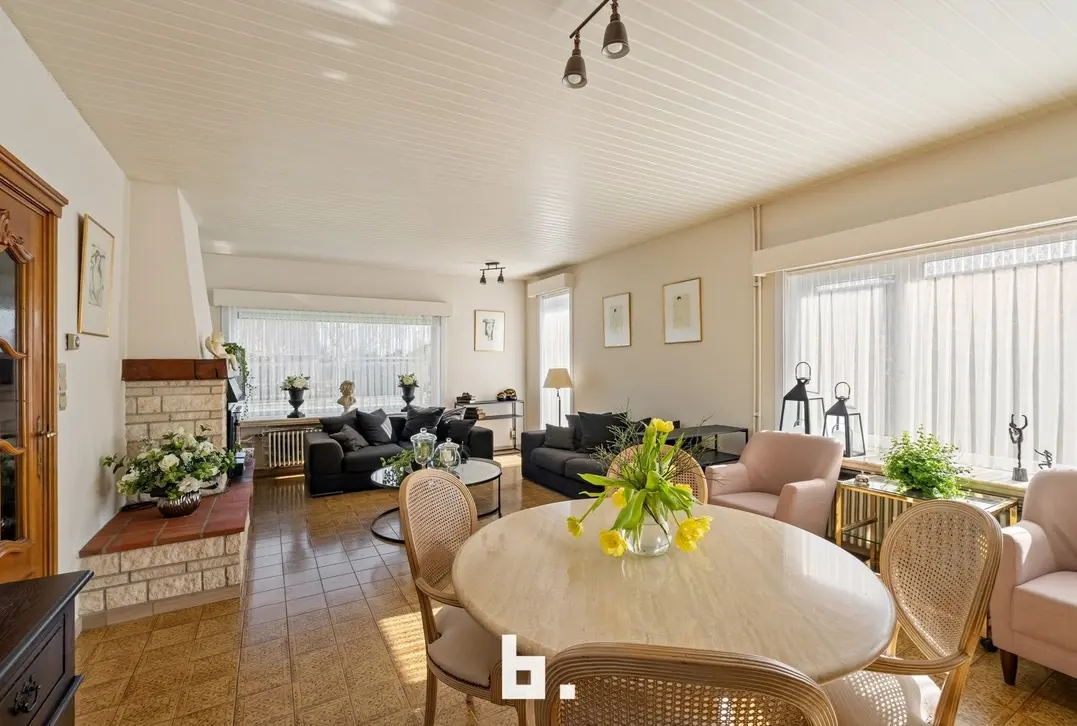 Deze open bebouwing met afzonderlijke dubbele garage en bijgebouw bevindt zich op een ruim perceel van 942 m². Deze eigendom is gelegen in het landelijke Varsenare en beschikt over een prachtige groene tuin op het zuidwesten. Zeer gunstige, uiterst centrale locatie nabij tal van voorzieningen en invalswegen. Deze gelijkvloerse woning vraagt om een renovatie en is als volgt ingedeeld: inkomhal met afzonderlijk toilet, ruime lichtrijke woonkamer, afzonderlijke leefkeuken met bureauruimte uitgevend op de tuin, 2 ruime slaapkamers, badkamer (ligbad, douche, wastafelmeubel). BUITENOMGEVING: ruime voortuin en oprit, zuidwest georiënteerde achtertuin, terras voorzien van zonneluifel, afzonderlijke dubbele garage, volledig gerenoveerd bijgebouw ingericht als feestzaal met afzonderlijke keuken en badkamer (incl. apart toilet en keukentje).
