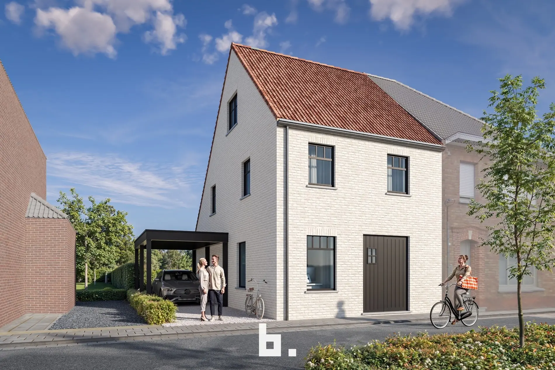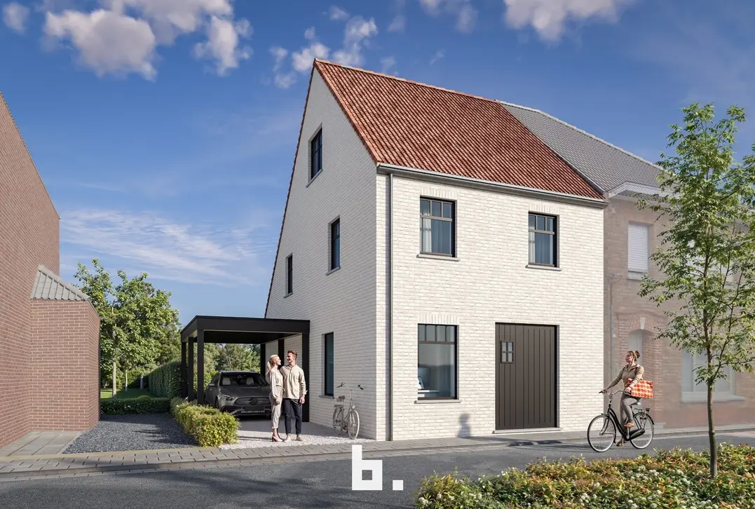 De halfopen bebouwing (512 m²) zal een moderne look hebben en voorzien zijn van alle hedendaags comfort en duurzame technieken. Inclusief warmtepomp, zonnepanelen, vloerverwarming (zowel beneden als boven) en ventilatiesysteem D. De indeling is als volgt: BENEDENVERDIEPING: inkom-/traphal met vestiaire, gastentoilet, bureau, grote lichtrijke open leefruimte voorzien van schuiframen, volledig ingerichte keuken met eiland. BOVENVERDIEPING: nachthal met toilet, 3 slaapkamers, badkamer (ligbad, inloopdouche, dubbel wastafelmeubel). Zolderverdieping. BUITENOMGEVING: zongerichte tuin. Carport inbegrepen. Graag nodigen we je uit op kantoor om de plannen en het lastenboek door te nemen. Neem contact met ons op voor het inplannen van een afspraak.