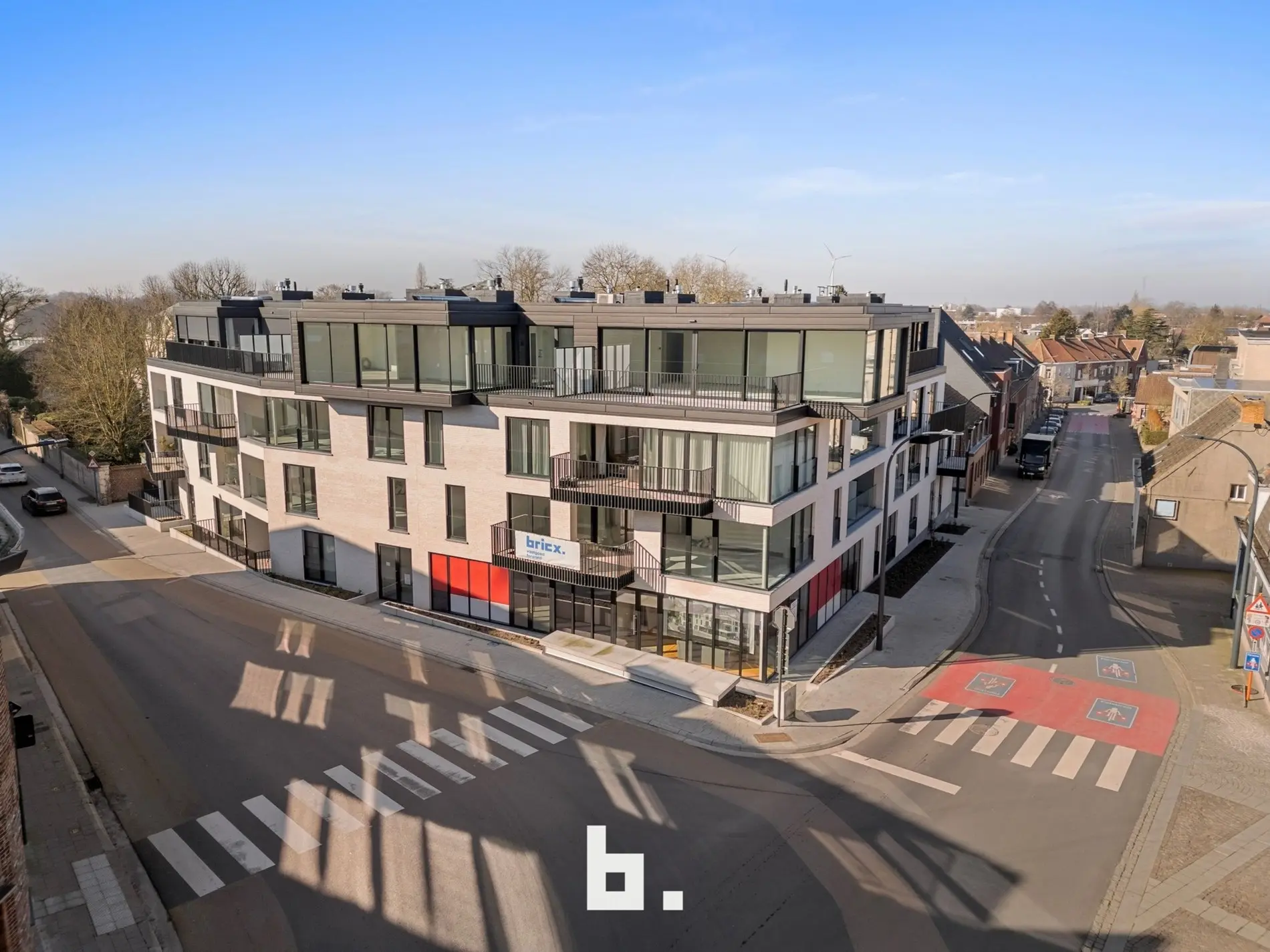 In het prestigieuze nieuwbouwproject Residentie Sint-Amandus bieden we een kwaliteitsvol en lichtrijk handelspand te koop aan, gelegen op de hoek van de Kortrijkstraat en de Harelbeekstraat — een zichtlocatie in het centrum van Zwevegem.