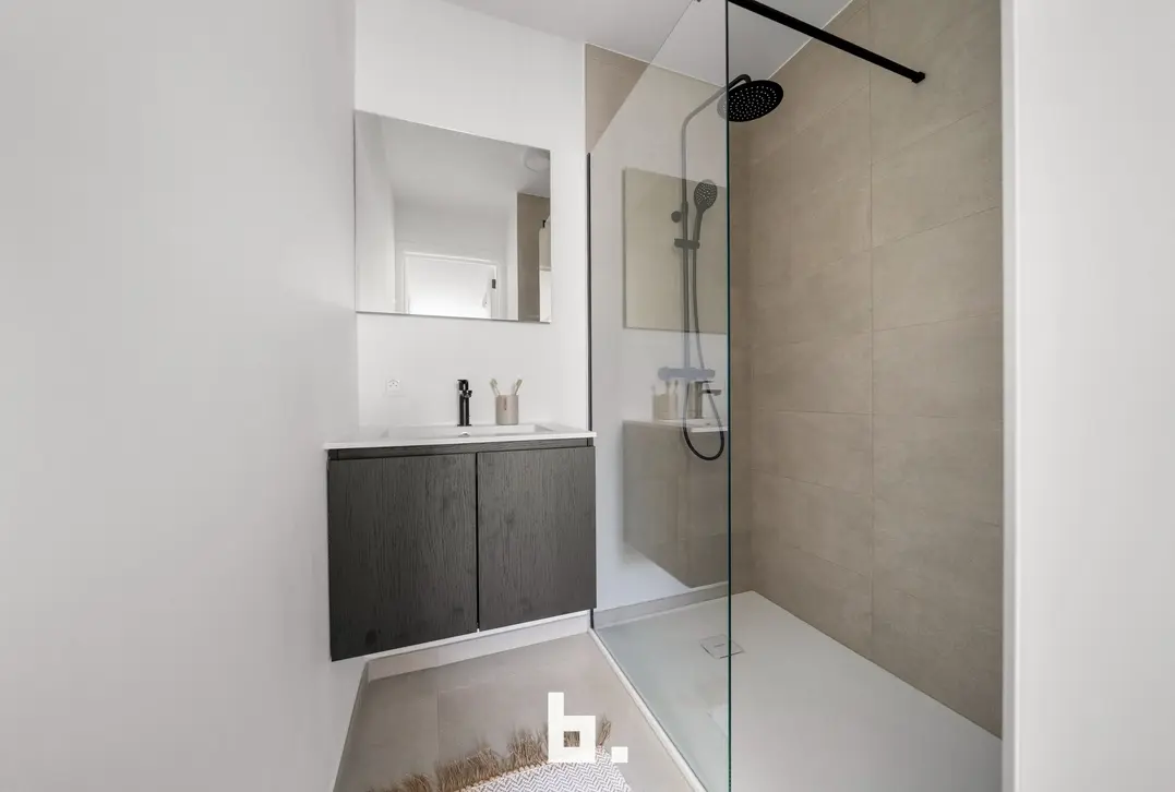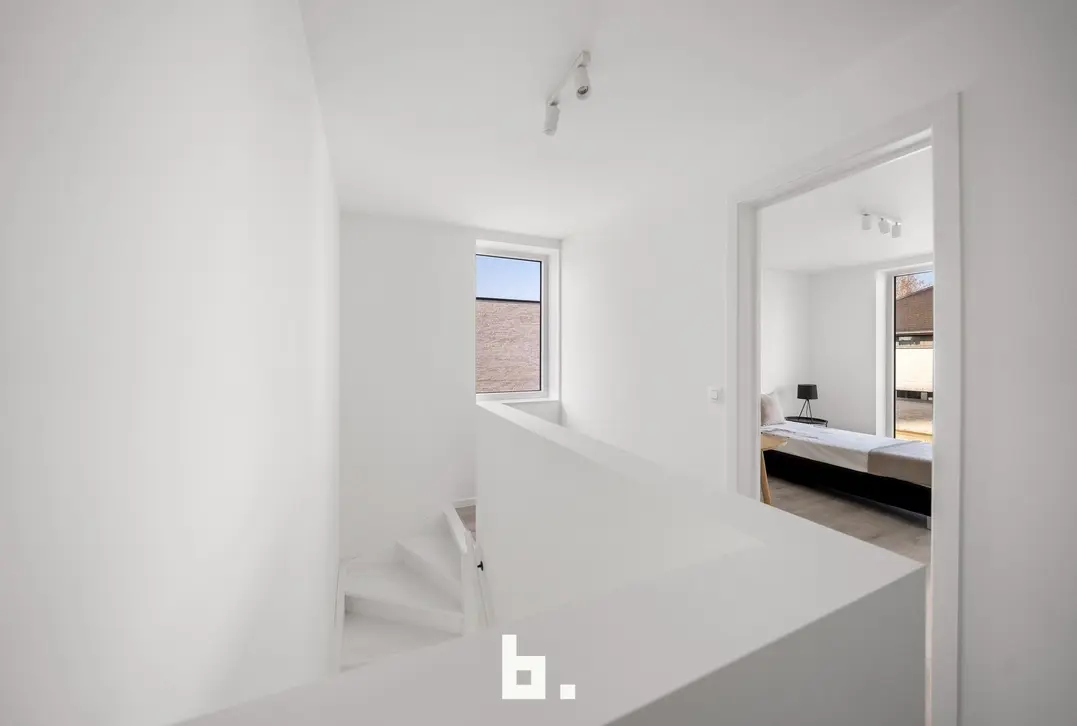 Bij binnenkomst betreedt u de inkomhal met een apart toilet en ingebouwde vestiarekasten. De ruime eetplaats loopt naadloos over in de zithoek en de volledig uitgeruste keuken met hoogwaardige toestellen. Aansluitend vindt u een grote berging met aansluitingen voor een wasmachine en extra opbergruimte.