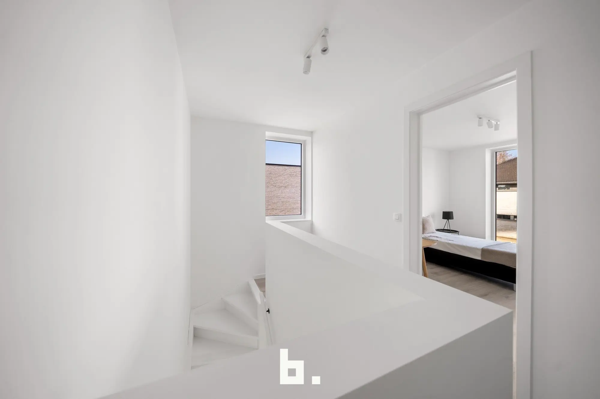 Op de eerste verdieping bevinden zich drie royale slaapkamers, elk met veel natuurlijke lichtinval en ruimte voor kasten. De badkamer is voorzien van een dubbele wastafel, een comfortabel ligbad en een inloopdouche. Daarnaast is er een afzonderlijk toilet op de gang. Extra praktisch is de bureauhoek op deze verdieping.