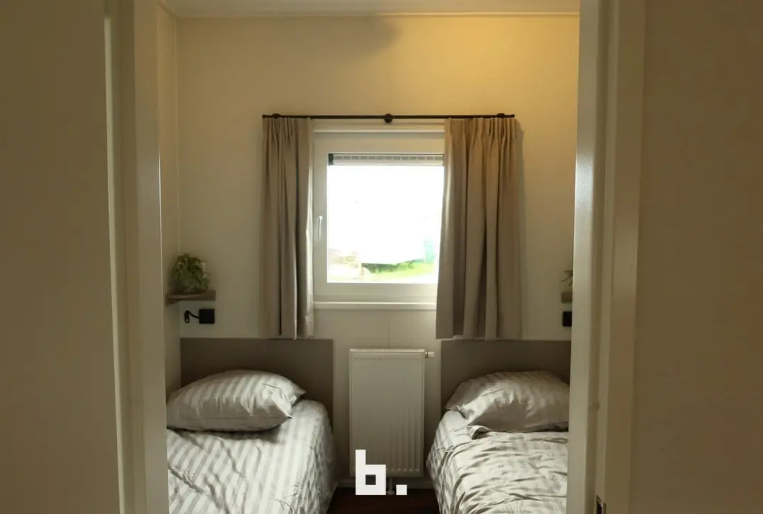 Nieuwe chalets (type Luxury) op topligging vlak aan zee te Wenduine met mooie living met aansluitend terras, open ingerichte keuken, gastentoilet, badkamer met douche, lavabo en 2 slaapkamers, volledig bemeubeld met nieuwe meubels, ideaal voor vakantieverhuur of 2 de verblijf, geschikt voor 4 personen of 6 personen, huur perceel grond € 3.000/jaar, aankoopprijs chalet is BTW inclusief, ( percelen zijn nog te kiezen naar mate de beschikbaarheid) TOPINVESTERING