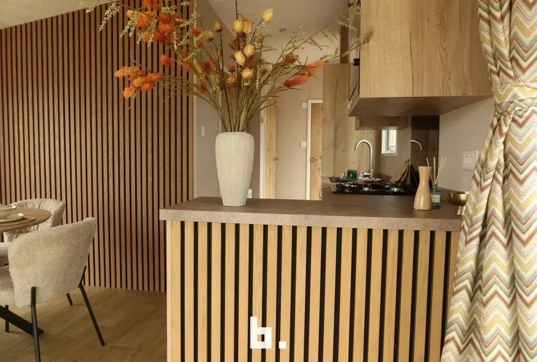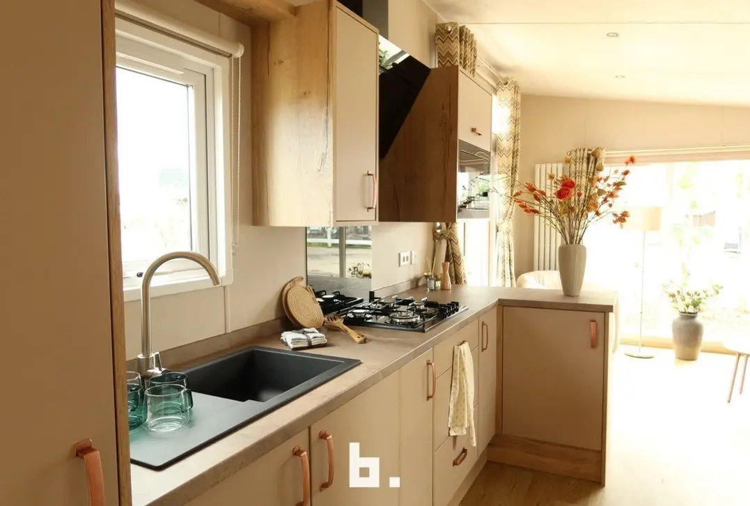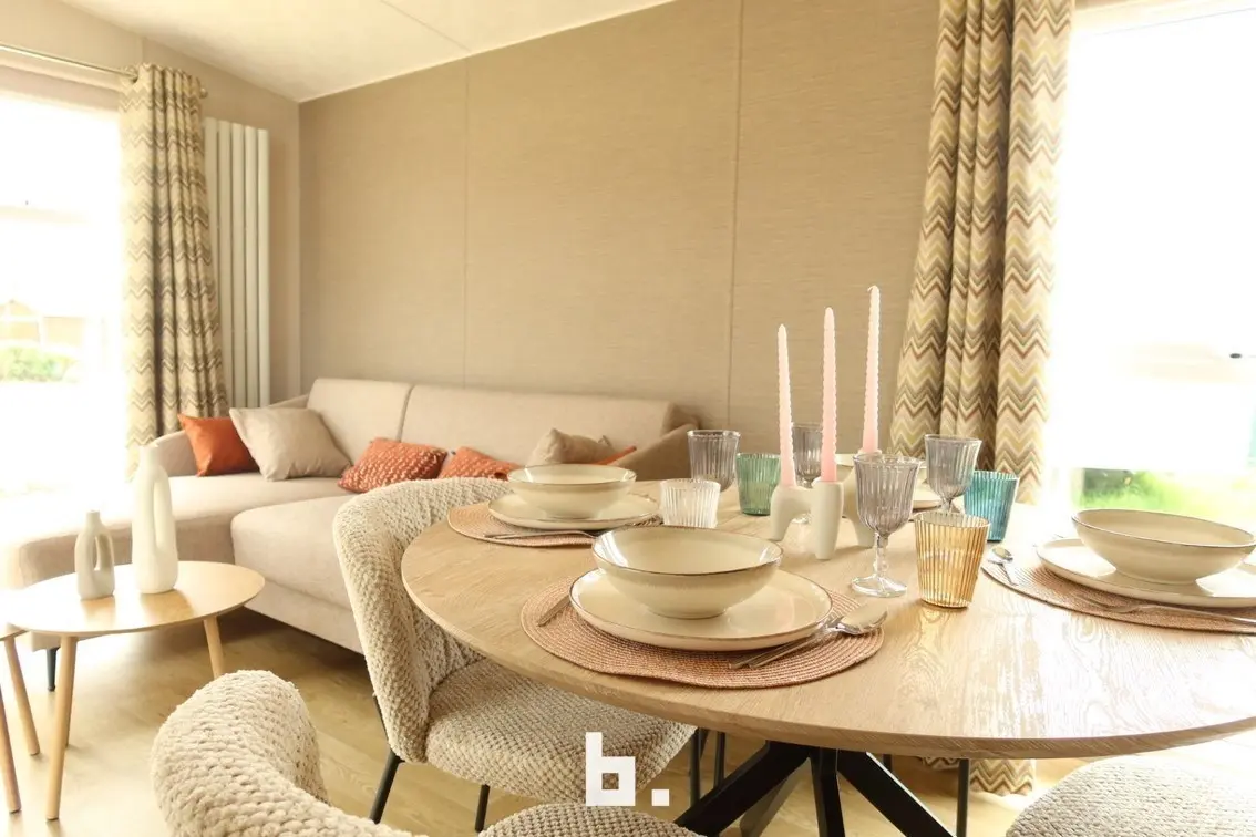 Nieuwe chalets (type Premium) op topligging vlak aan zee te Wenduine met mooie living met aansluitend terras, open ingerichte keuken, gasten toilet, badkamer met douche, lavabo en 3 slaapkamers, volledig bemeubeld met nieuwe meubels, ideaal voor vakantieverhuur of 2 de verblijf, geschikt voor 6 personen huur.