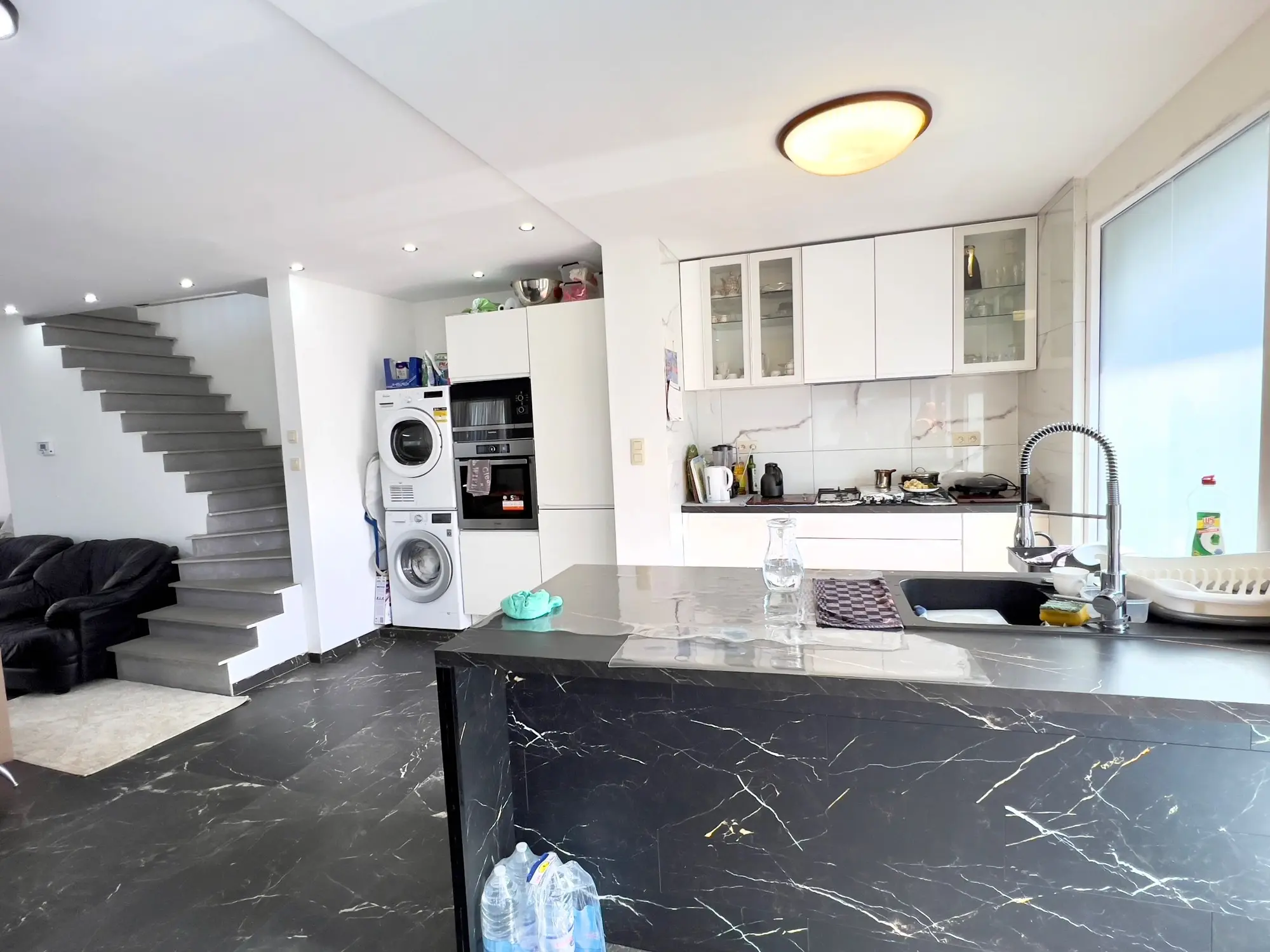 Deze ruime woning is net volledig gerenoveerd. Op het gelijkvloerse is er een ruime leefruimte met open keuken en een ruime zithoek en toilet. Op het eerste verdiep zijn er 3 slaapkamers, de badkamer en het toilet en een ruim zon gericht terras. De zolder is in gebruik als berging. Het achterhuis heeft een garage, leefruimte met keuken en in de hal is er de badkamer, op het verdiep zijn er 2 slaapkamers. Zien is kopen.