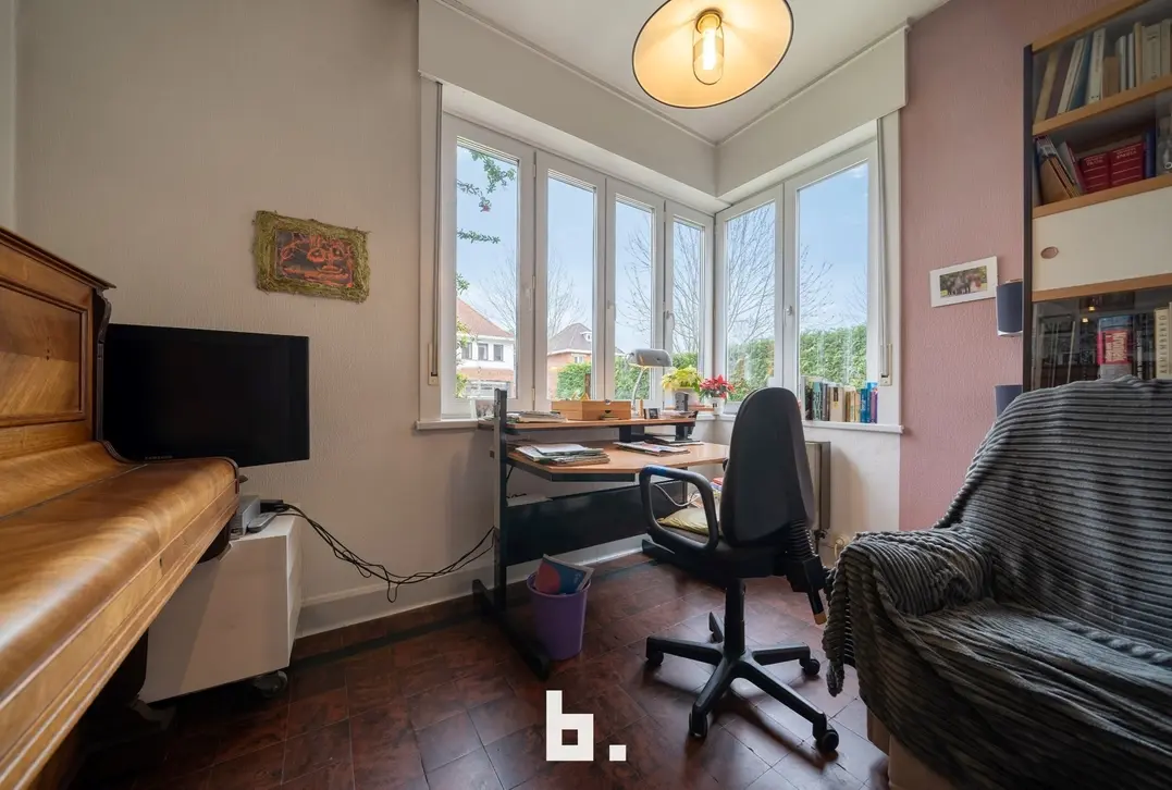 Deze karaktervolle halfopen woning bevindt zich in een aantrekkelijke groene buurt en beschikt over riante volumes alsook oprit en grote tuin. Zeer centrale, vlot bereikbare ligging nabij supermarkten, winkels, scholen, Expresweg, bushalte, station, centrum Brugge ... De indeling is als volgt: BENEDENVERDIEPING: ruime inkom-/traphal met gastentoilet, lichtrijke woonkamer, aparte keuken met bijkeuken, bureau vooraan de woning. KELDERVERDIEPING: ruime droge kelder onderverdeeld in drie compartimenten. BOVENVERDIEPING: nachthal, 3 volwaardige slaapkamers, badkamer, afzonderlijk toilet, berging. ZOLDERVERDIEPING: zeer ruime zolder voorzien van uitschuifbare zoldertrap. BUITENOMGEVING: oprit, voortuin, leuke west georiënteerde achtertuin, gezellig terrasje palend aan de woning.